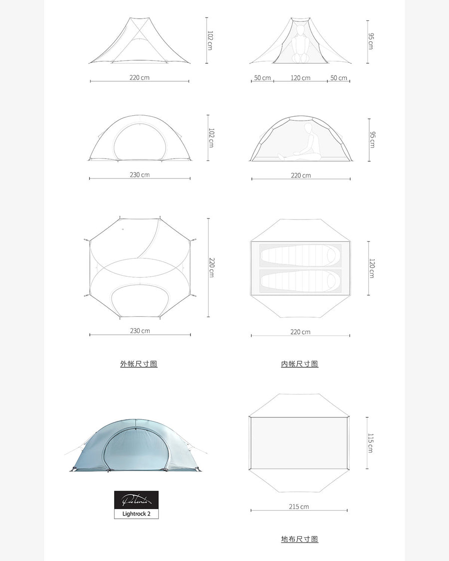 The LIGHTROCK 2P is a hang freestanding tent ideal for two people for all 3 seasons. It is characterized by its spaciousness, lightweight, and easy setup just like LIGHTROCK 1.