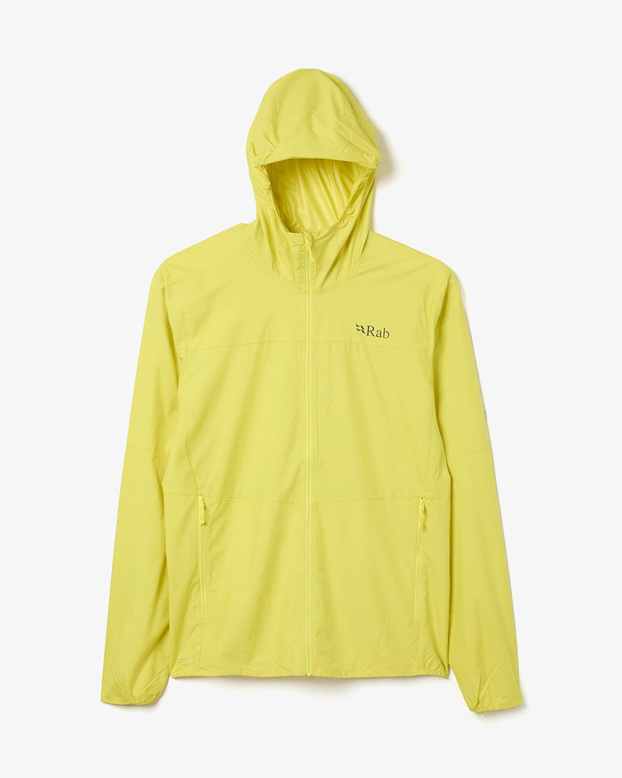 The lightweight windshell jacket is made from 50D Pertex® Quantum nylon with fluorocarbon-free DWR, offering packable wind protection for mountaineering, trekking, and fastpacking, with YKK® zippers and hand pockets.