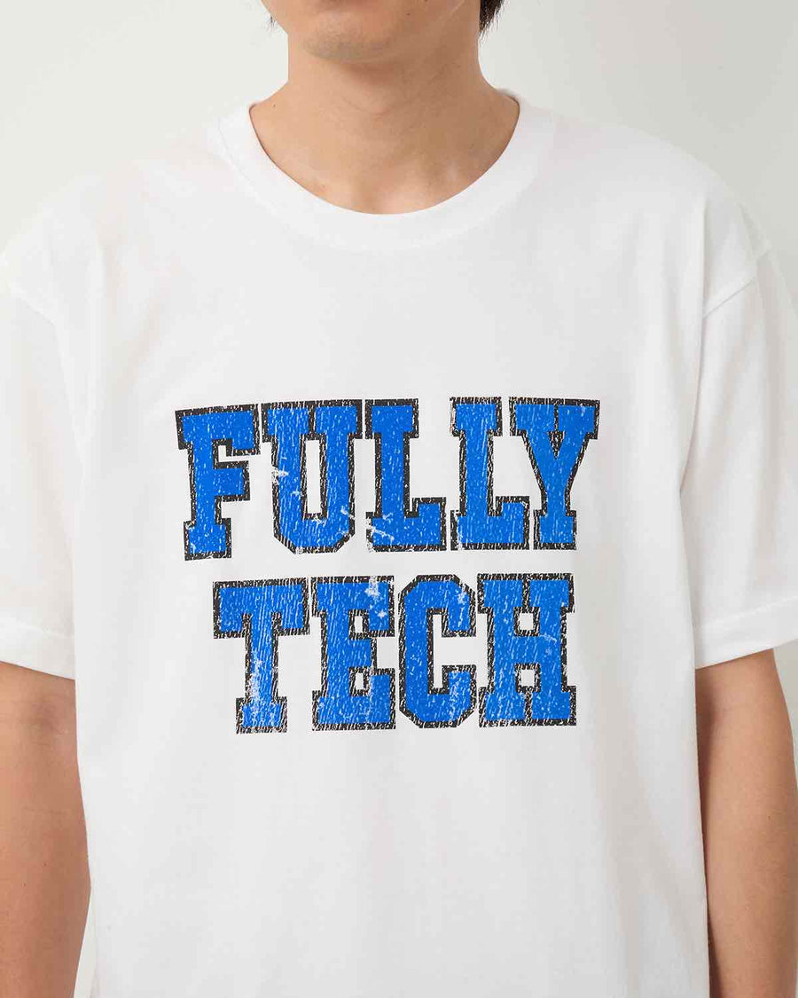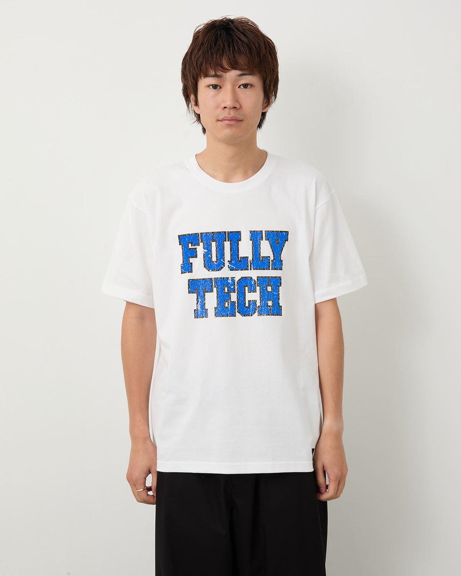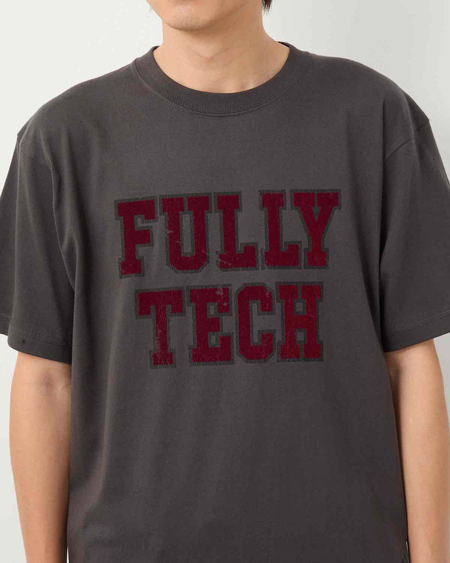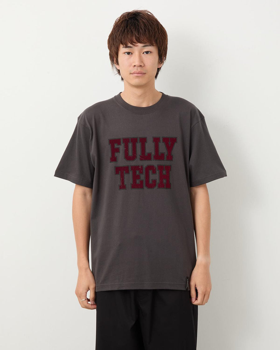 A short-sleeve T-shirt made from 6.2oz regular cotton, featuring a flock print of “FULLY TECH” on the front.