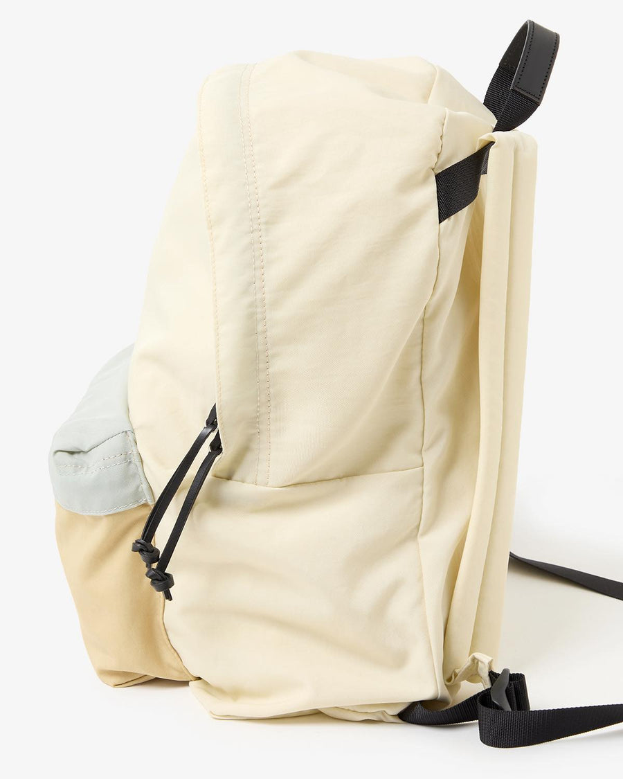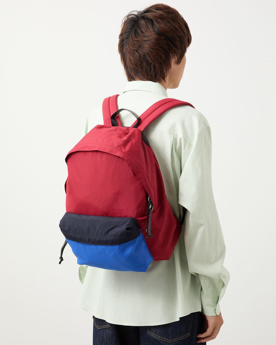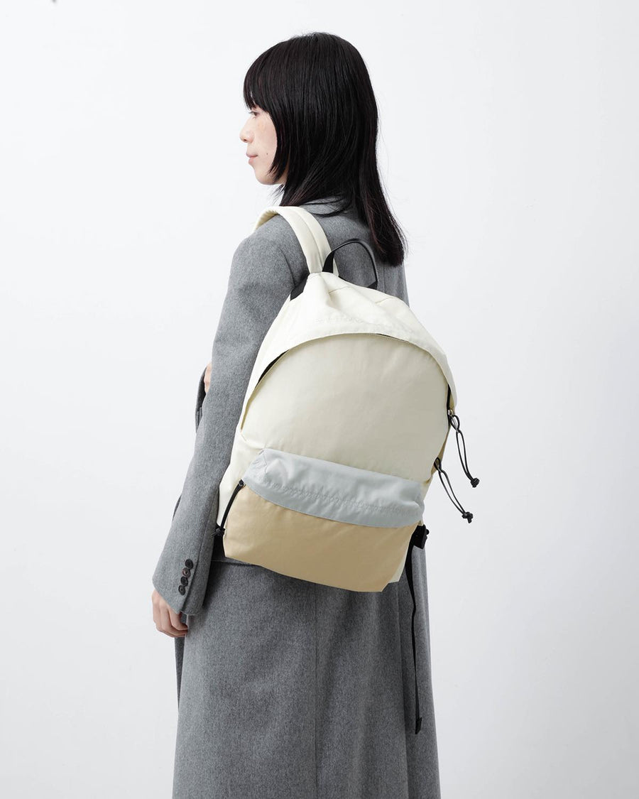 A backpack made in collaboration with Japanese brand Aeta, crafted from 210D nylon oxford. It features a soft yet substantial feel, refined details, and playful color-blocked panels.