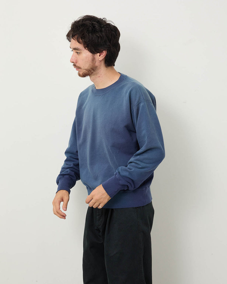 A crewneck sweatshirt in Pima cotton and air-spun yarn, garment-dyed for a lightweight, textured, and worn-in finish.