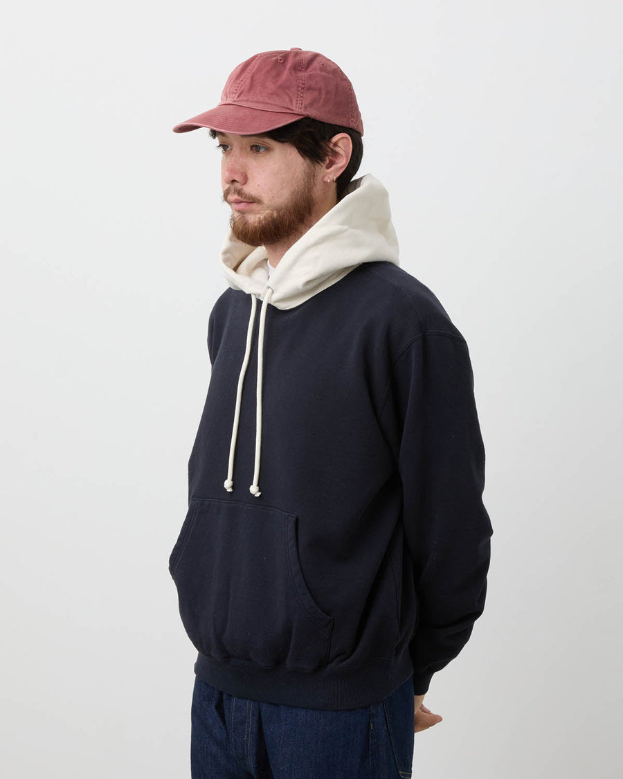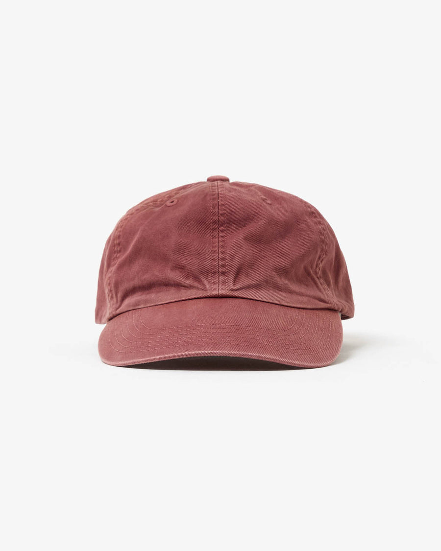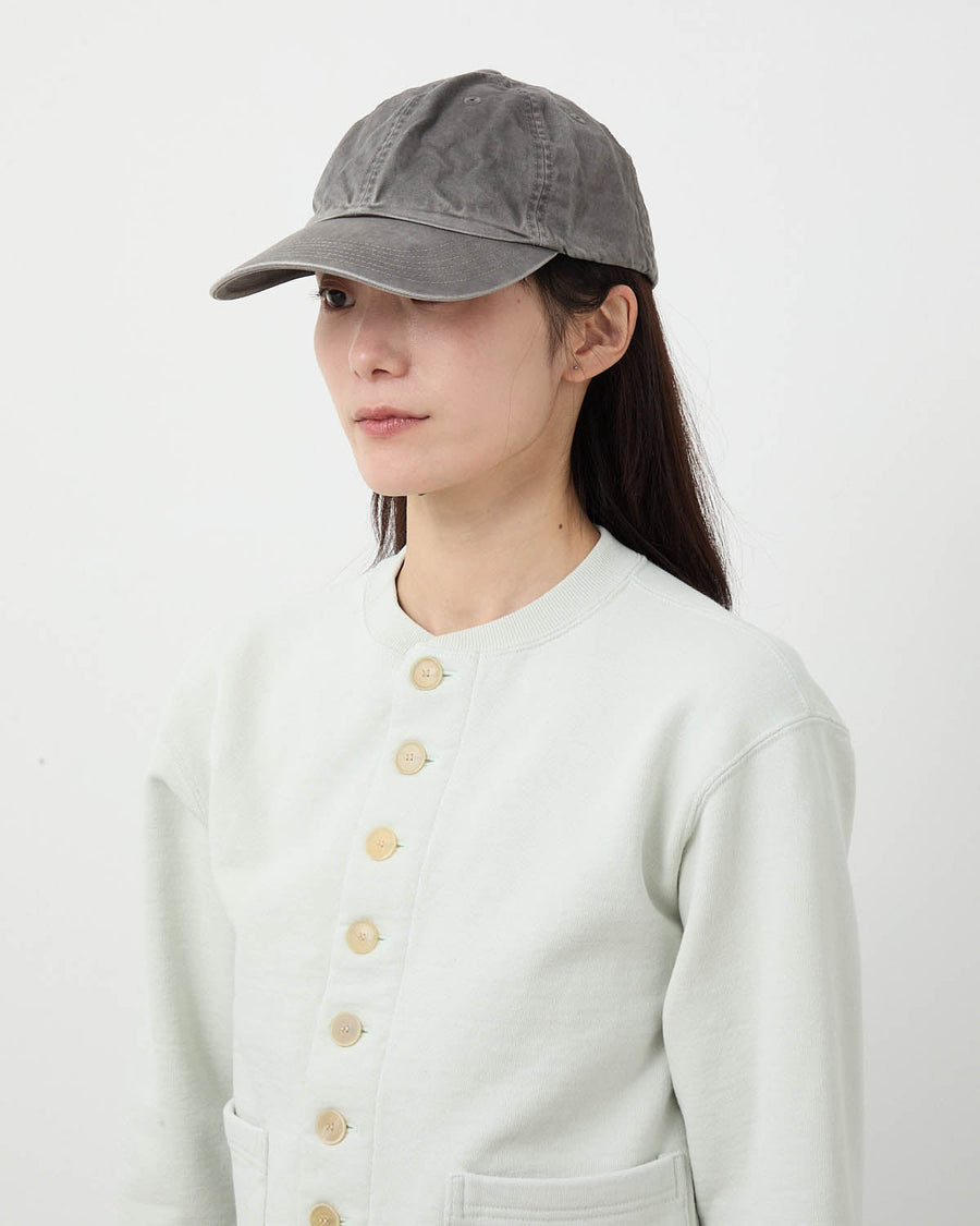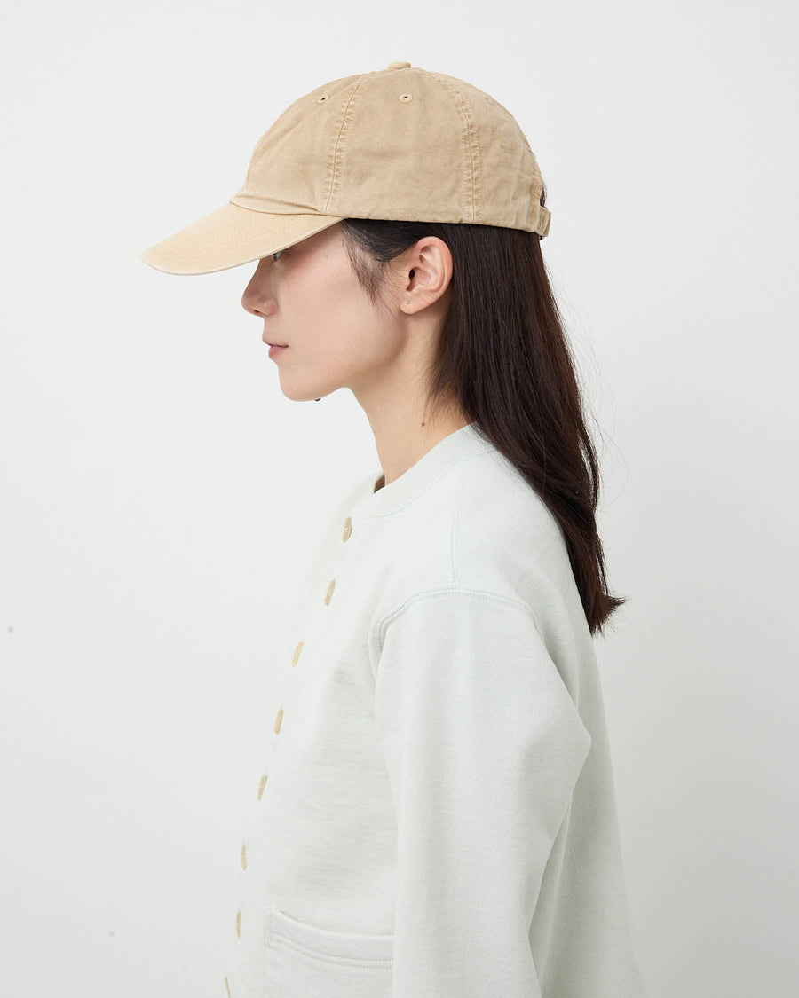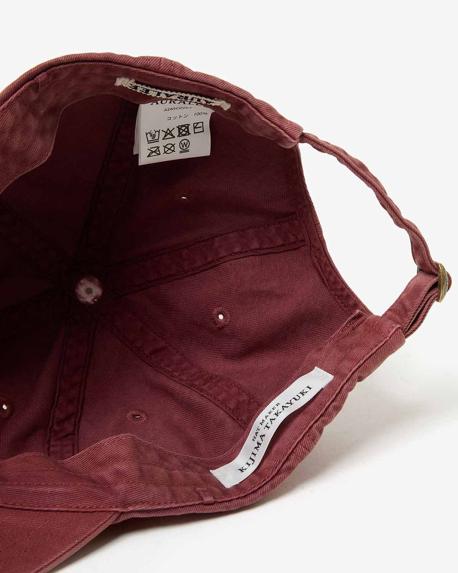 A 6-panel cap crafted by KIJIMA TAKAYUKI.Made from triple-ply Egyptian Finks cotton yarn, finished by hand after garment dyeing for a natural texture, subtle color variation, and rich depth.