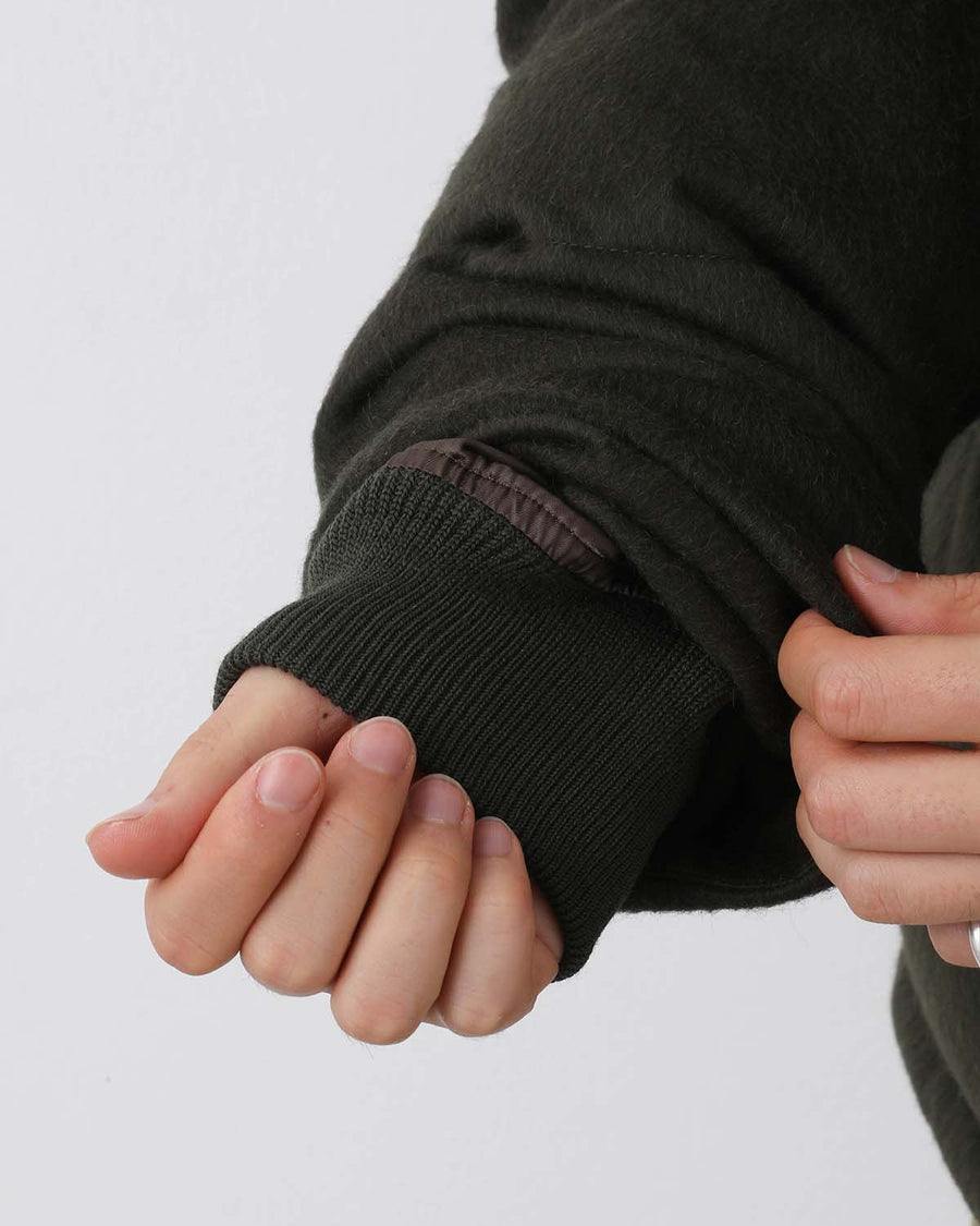 Luxurious down blouson made from 100% Mongolian baby camel flannel, featuring a soft, brushed texture and refined, elegant finish.