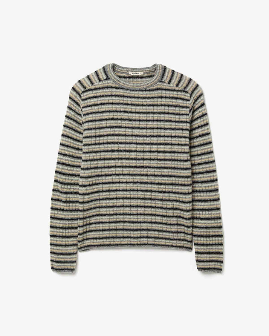 AURALEE SHETLAND WOOL CASHMERE RIB KNIT P/O
