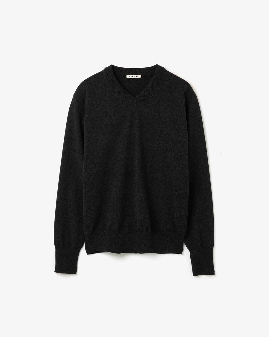 AURALEE HIGH TWIST WOOL KNIT V-NECK P/O