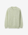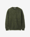 A luxurious pullover mohair knit made from soft South African super kid mohair spun with a gentle twist and natural wool core, offering lightweight warmth, a smooth texture, lustrous sheen, and voluminous long fibers.