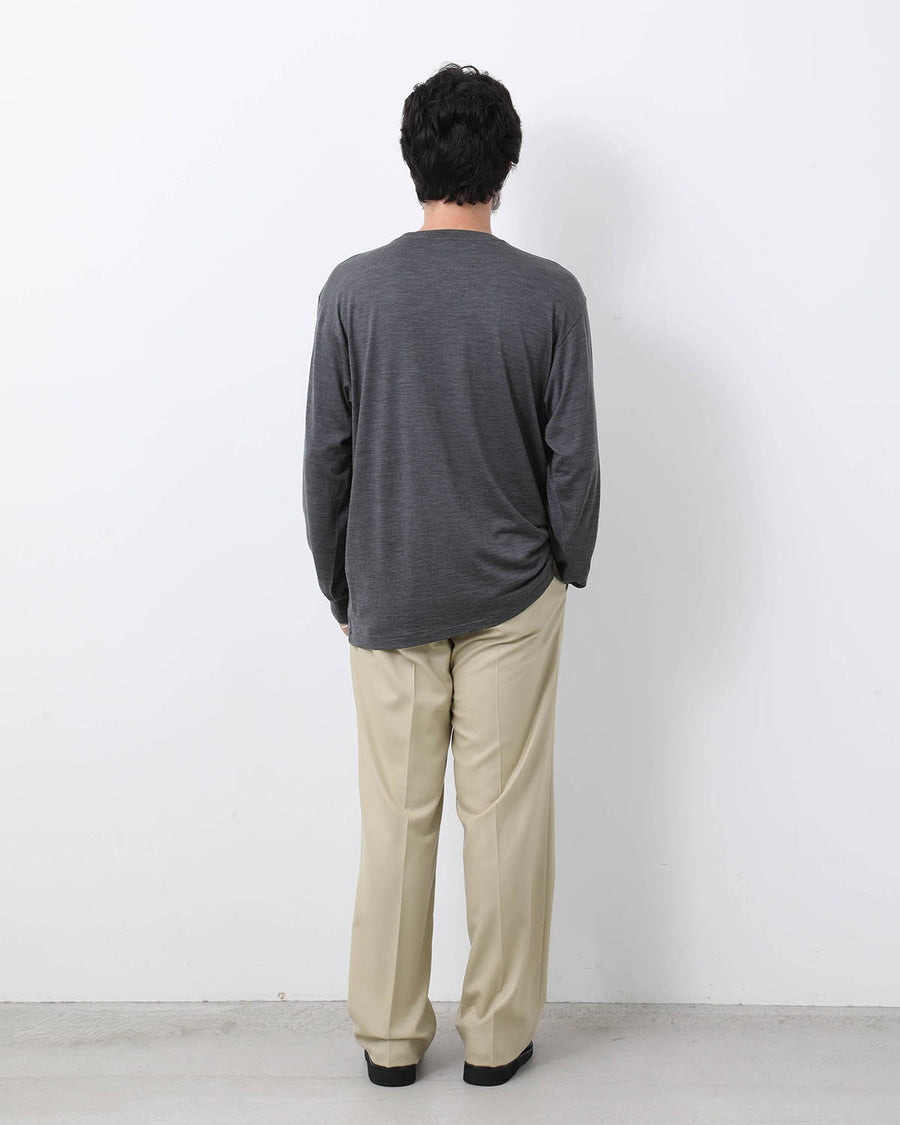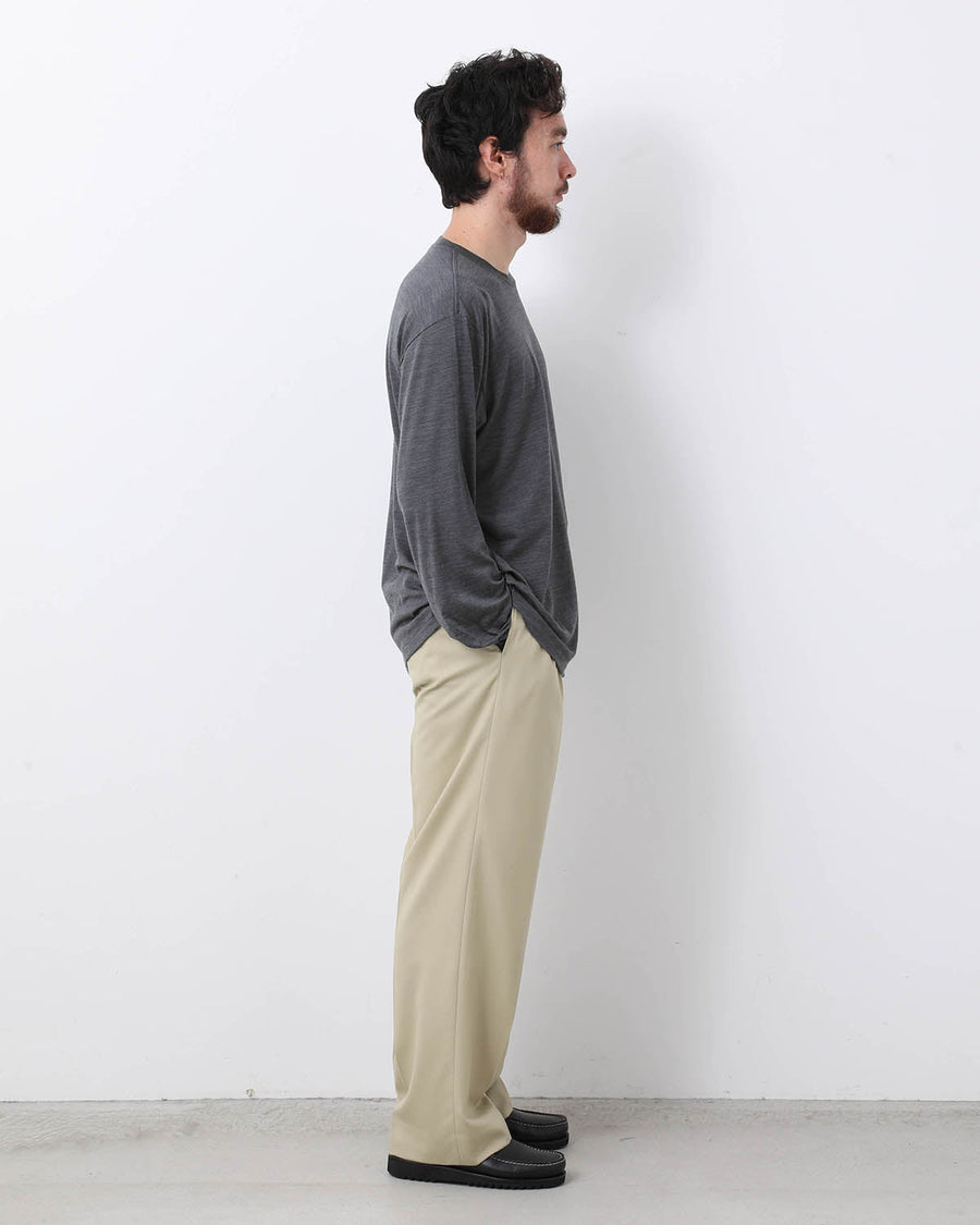 上質なウール素材を使用し、環境に配慮した防縮加工を施したウールビエラ生地のスラックスです。