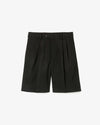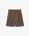 Tailored shorts crafted from ultra-high-density Super 140’s worsted wool gabardine, offering natural stretch, structure, and a refined water-repellent finish.