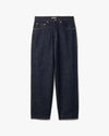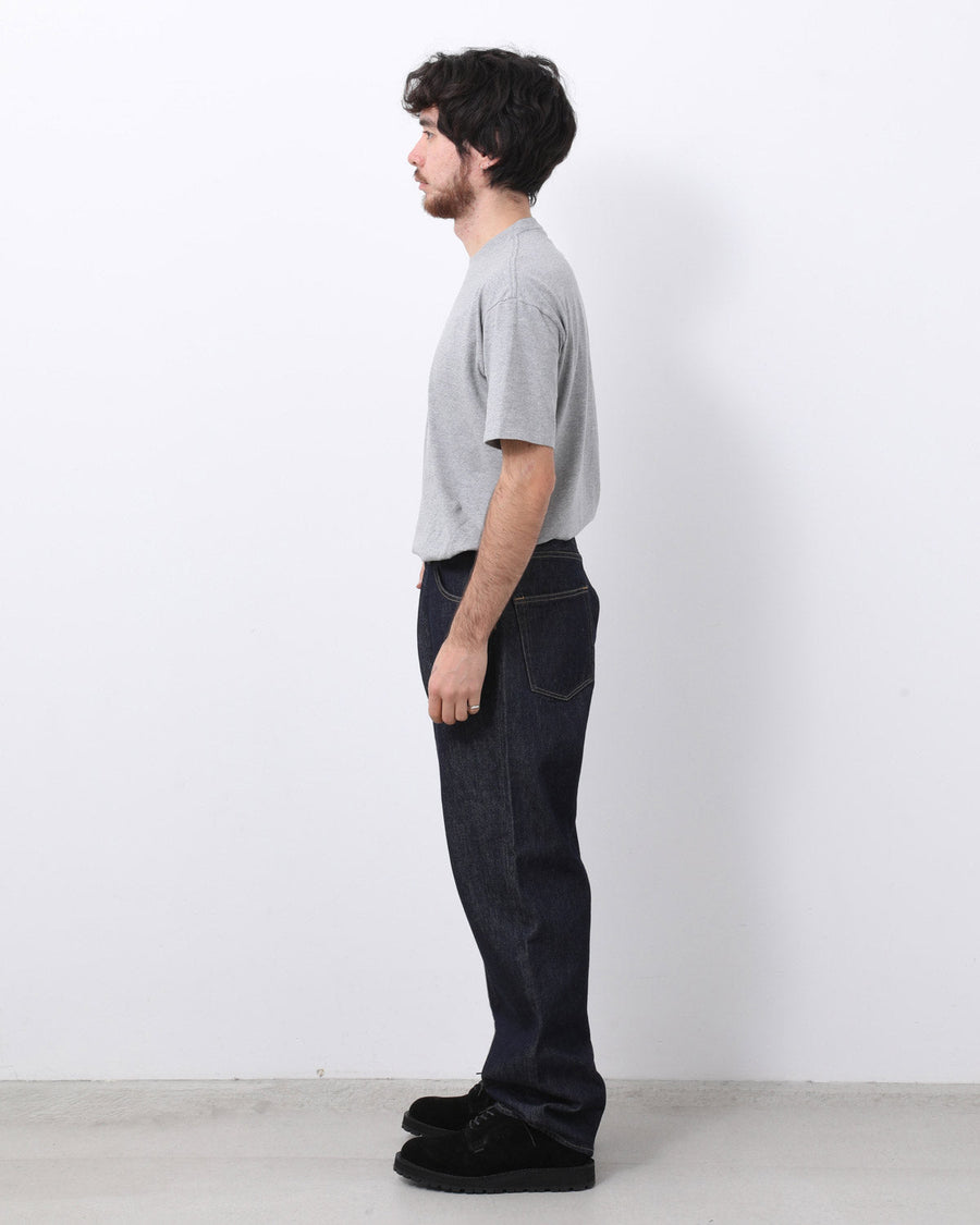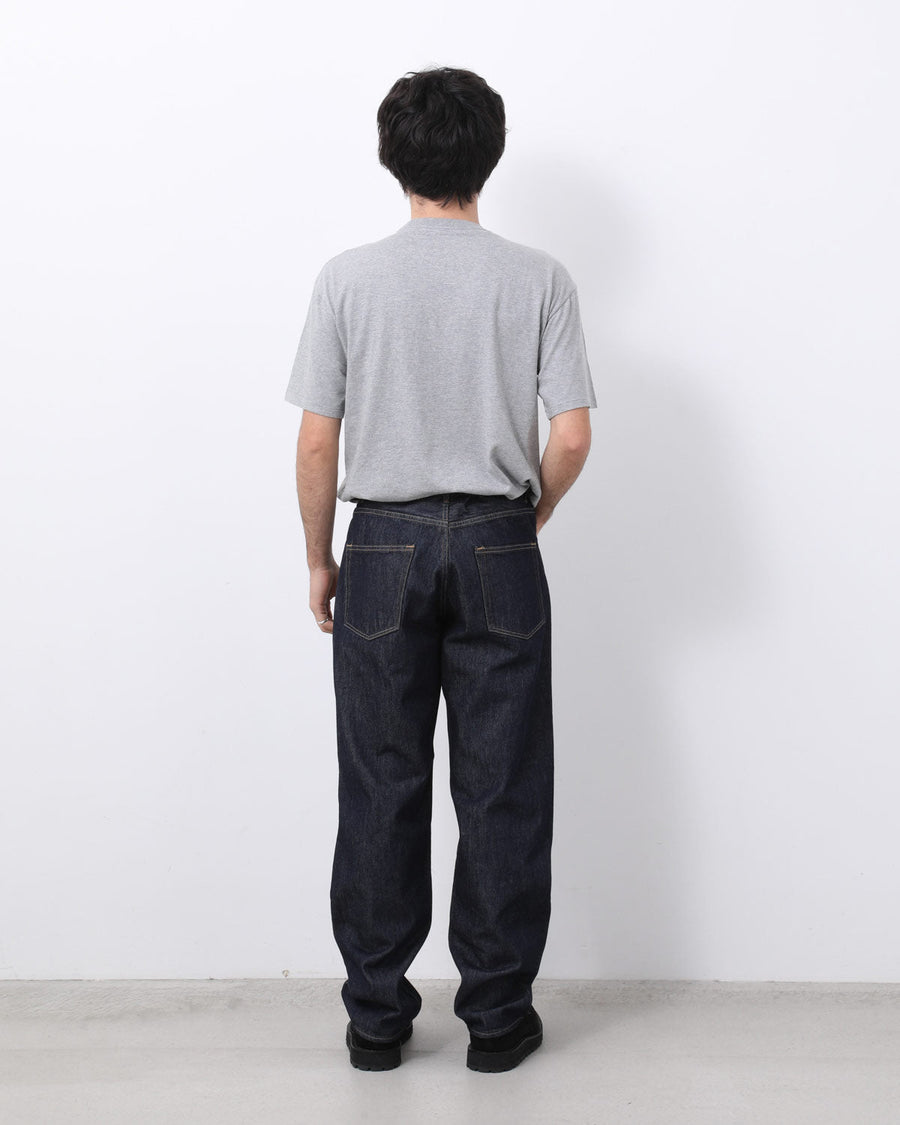 These wide pants are made from original denim designed to retain a crisp, raw-like texture even after washing, offering a slightly stiff feel with natural stretch.