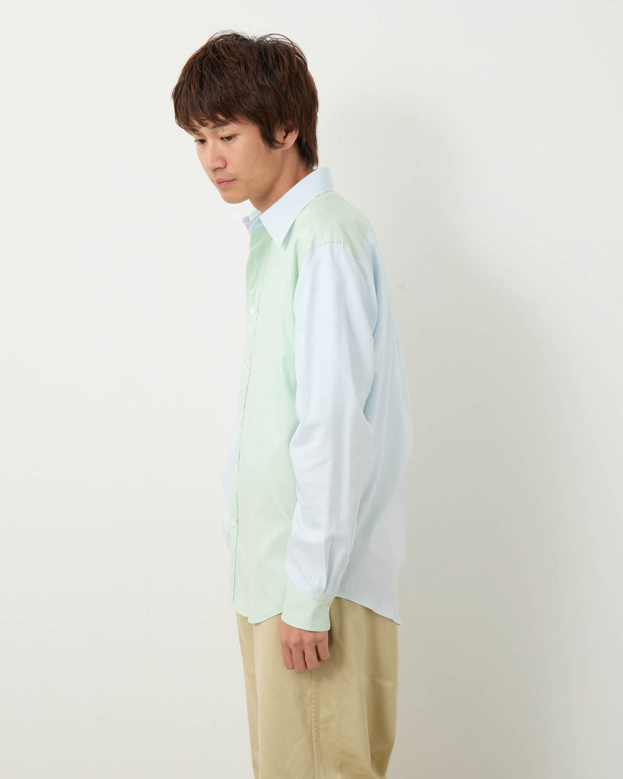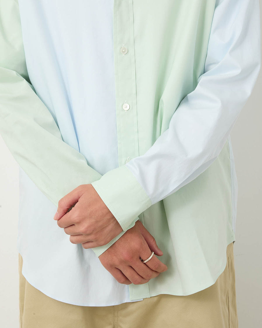 A shirt made from fine-count Egyptian Finx cotton ox chambray. It features a silky smooth touch and refined texture, enhanced by minimal processing to preserve the fabric’s natural quality.