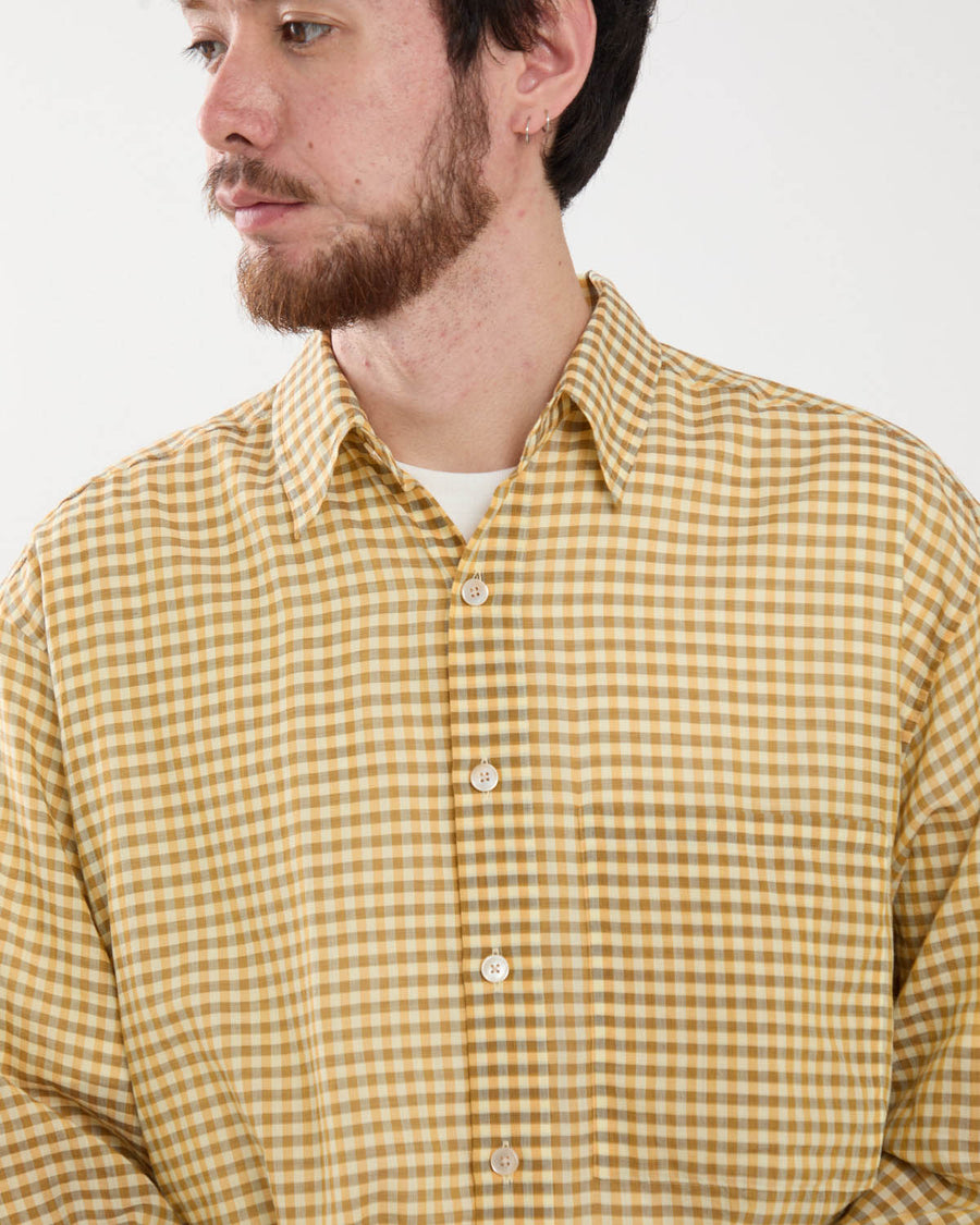 Long-sleeve shirt in premium cotton gingham, woven from fine extra-long staple yarns for a lightweight feel with subtle transparency and depth of color.