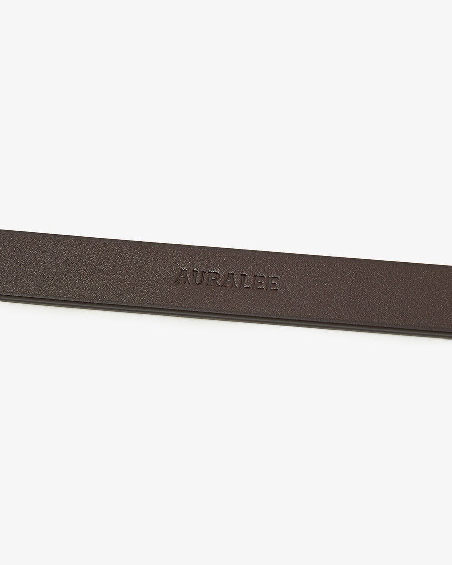 Luxurious leather belt crafted from premium box calf, meticulously made by skilled Japanese artisans.