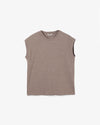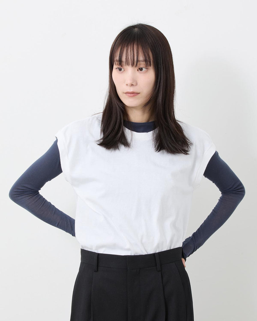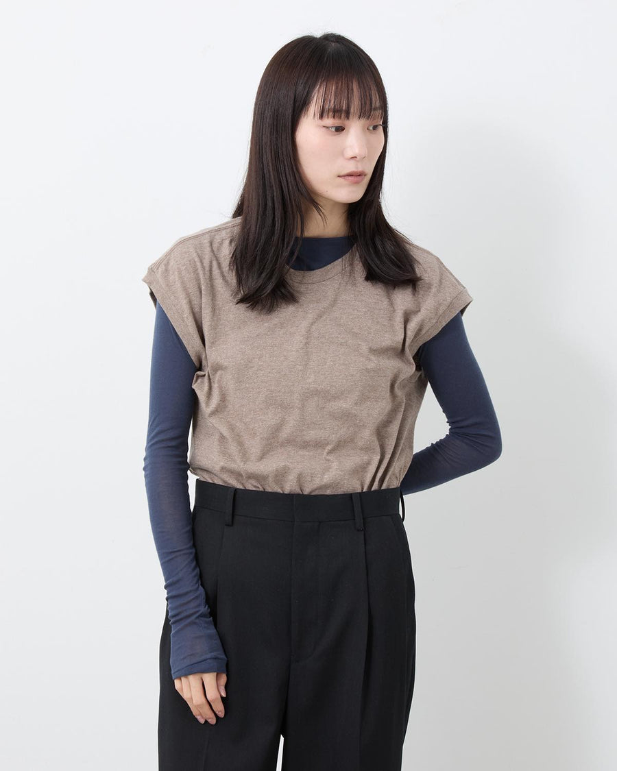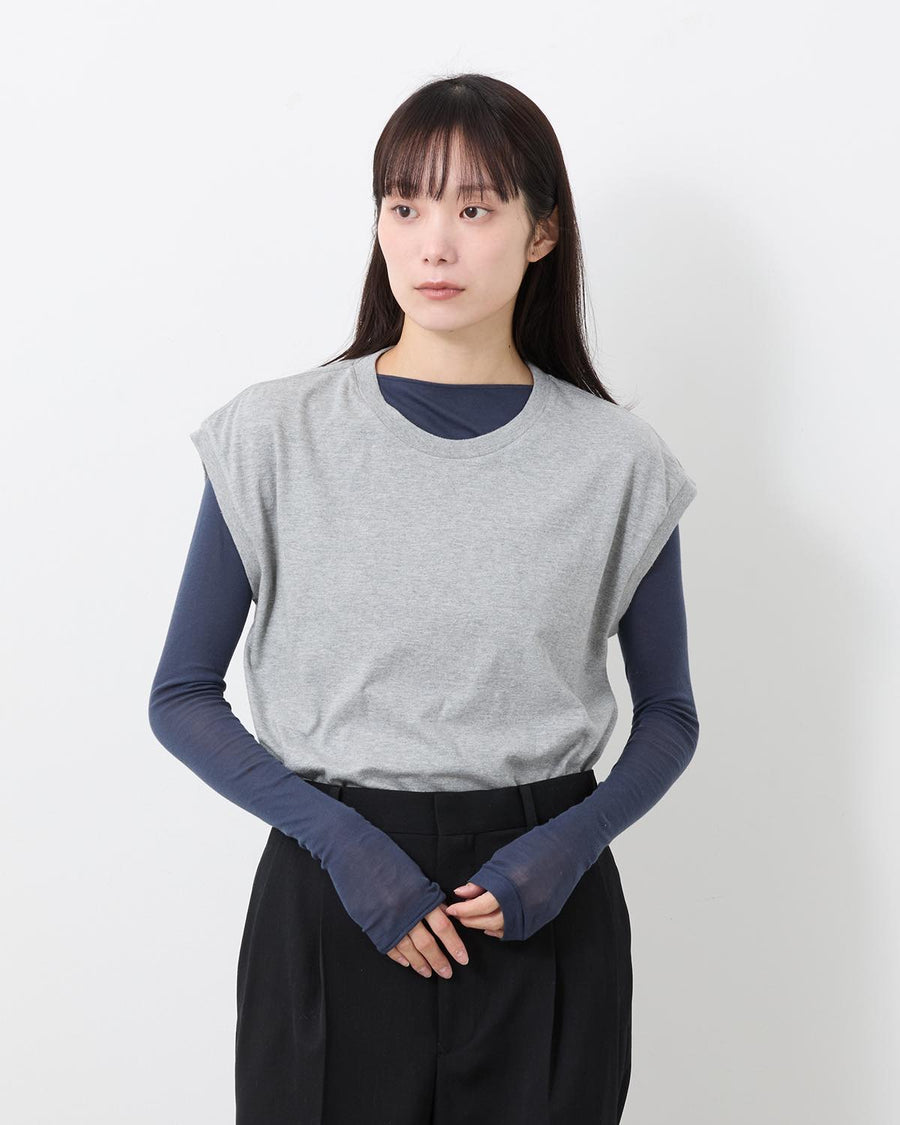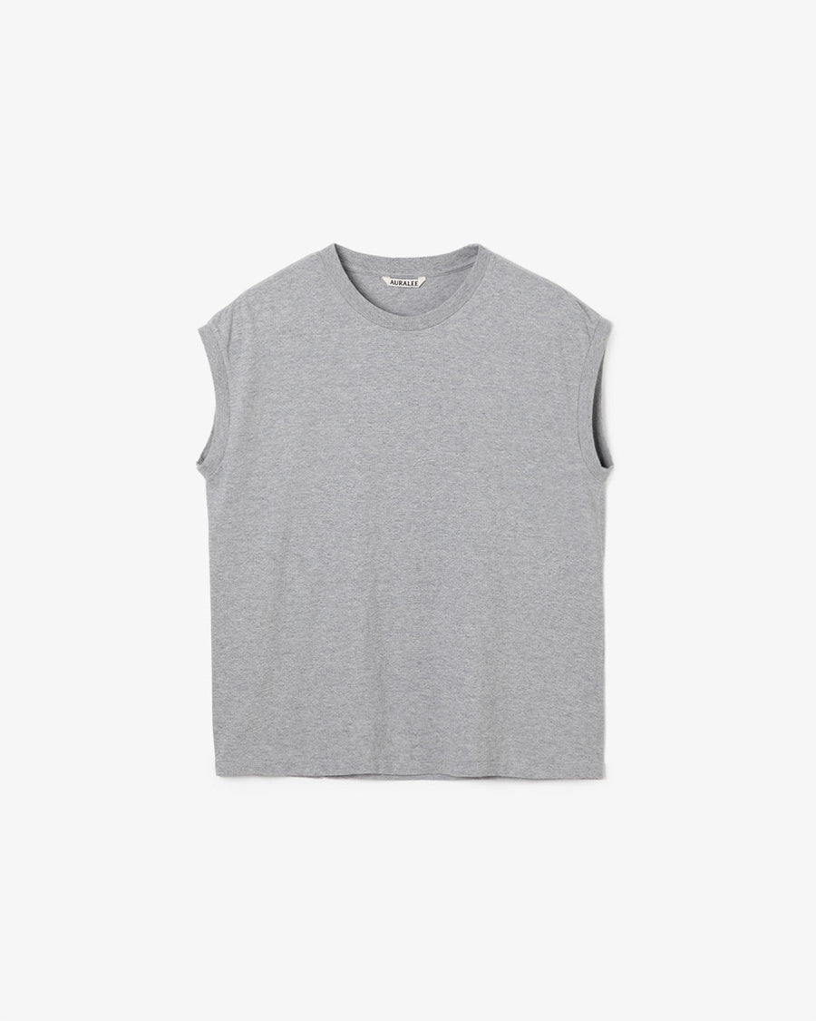 A sleeveless T-shirt crafted from meticulously made tubular jersey using the longest extra-long staple cotton, offering exceptionally soft, smooth, and luxurious hand—AURALEE’s year-round signature fabric.