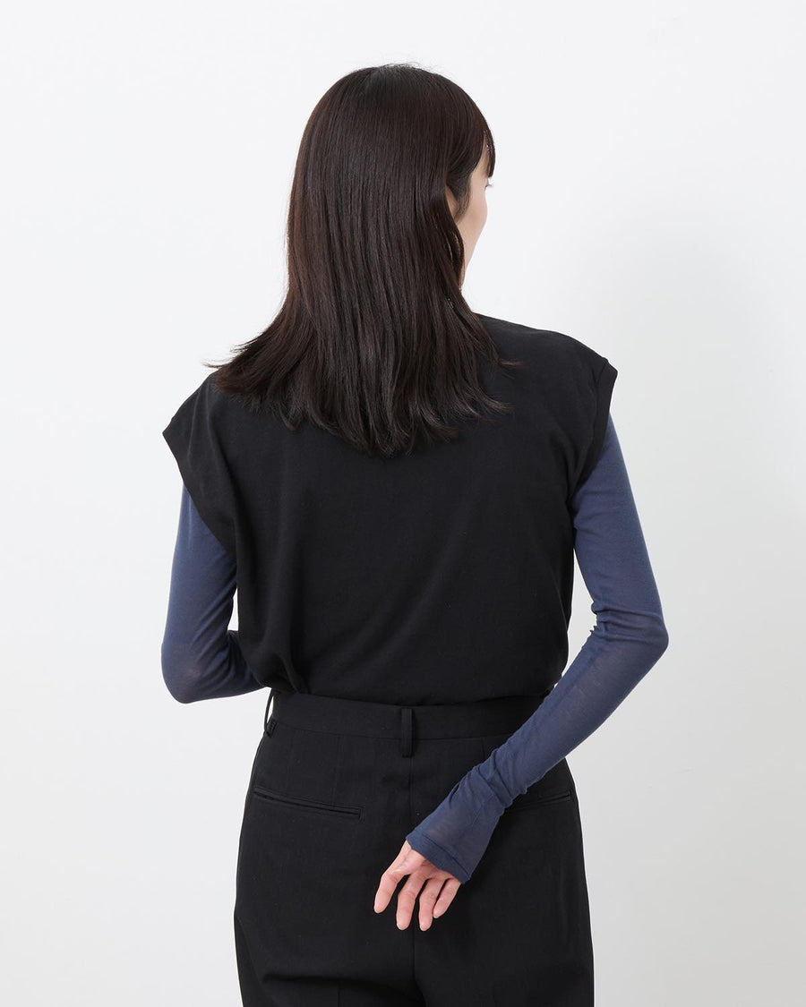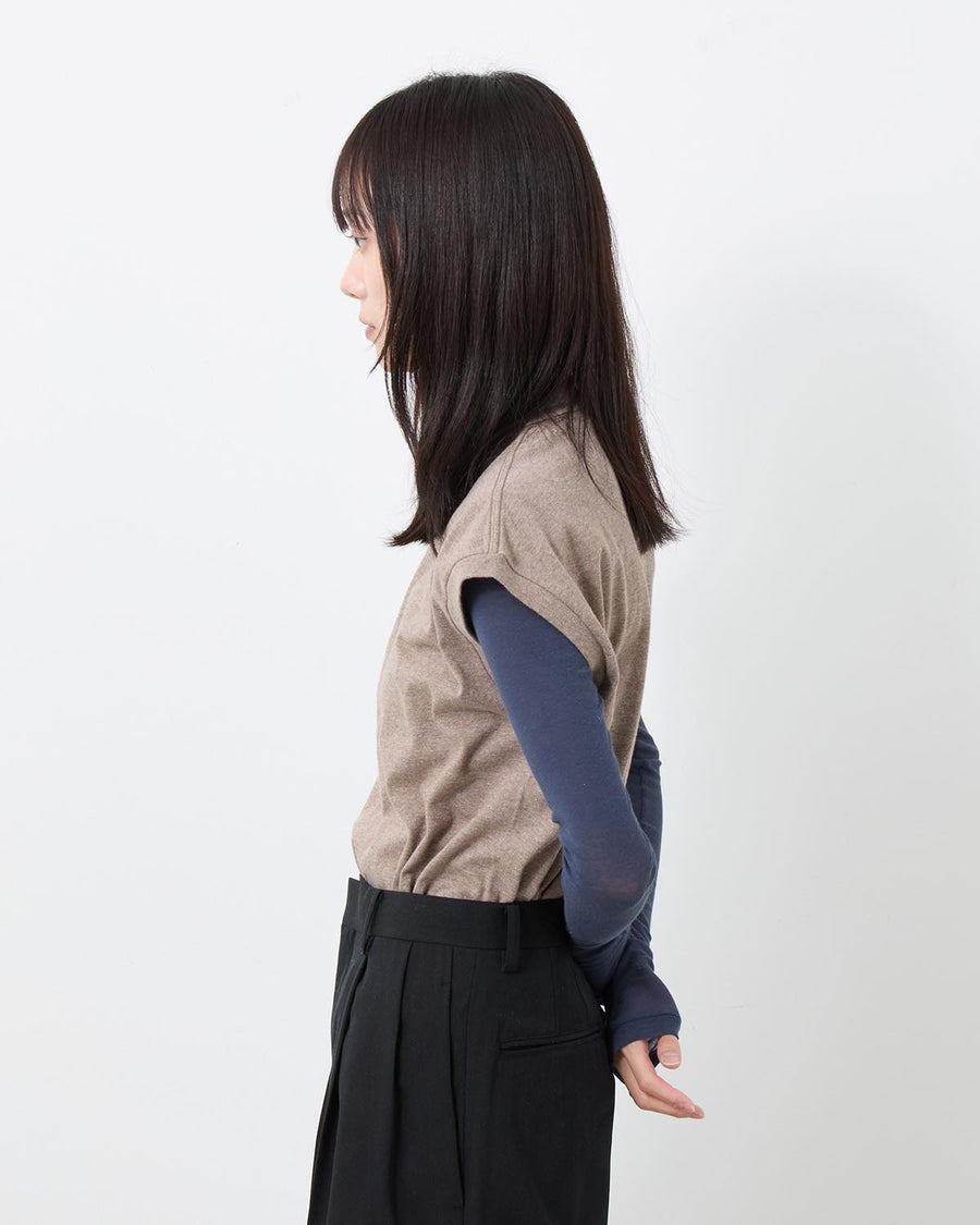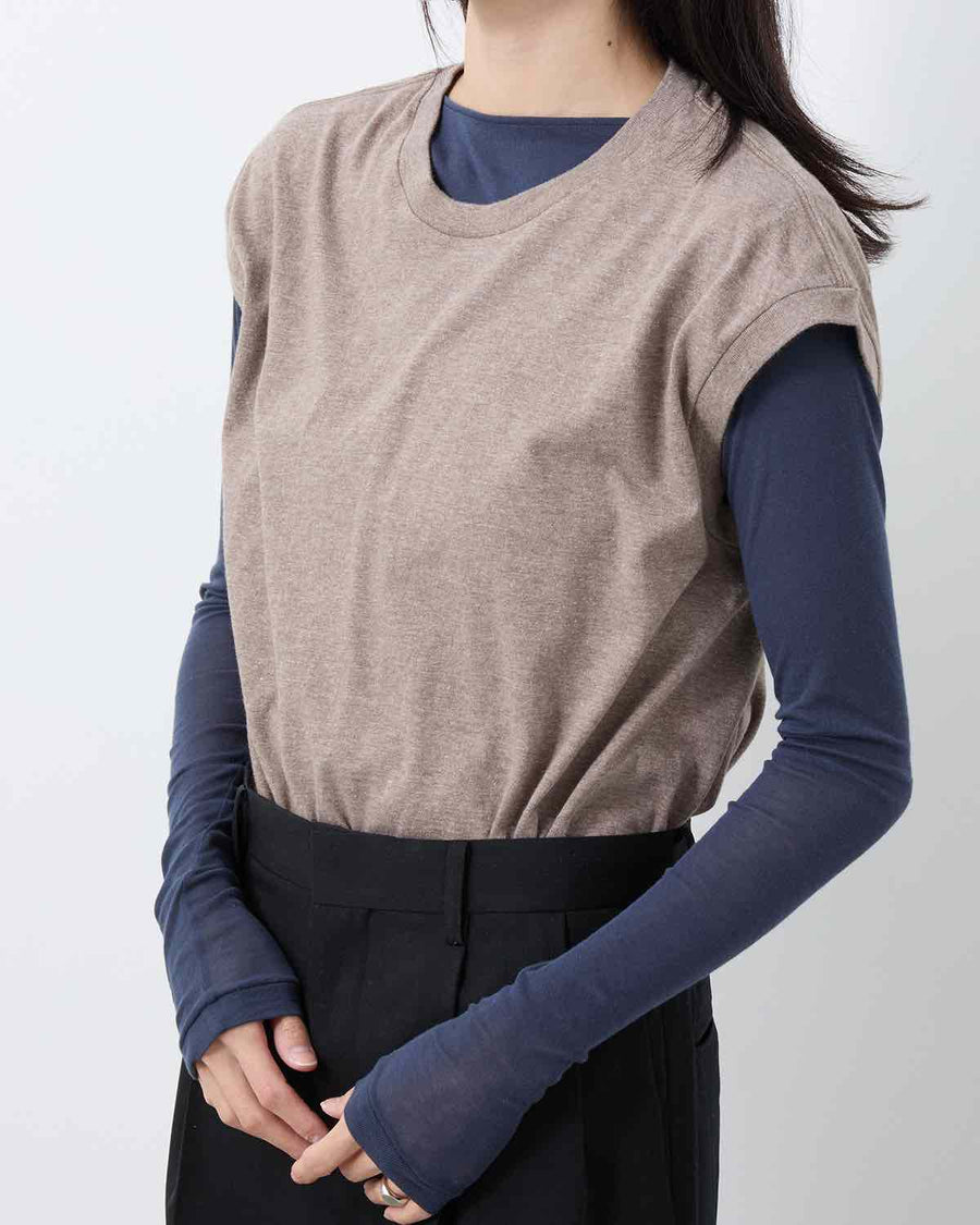 A sleeveless T-shirt crafted from meticulously made tubular jersey using the longest extra-long staple cotton, offering exceptionally soft, smooth, and luxurious hand—AURALEE’s year-round signature fabric.