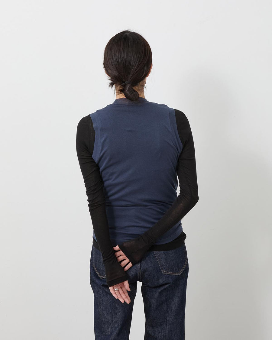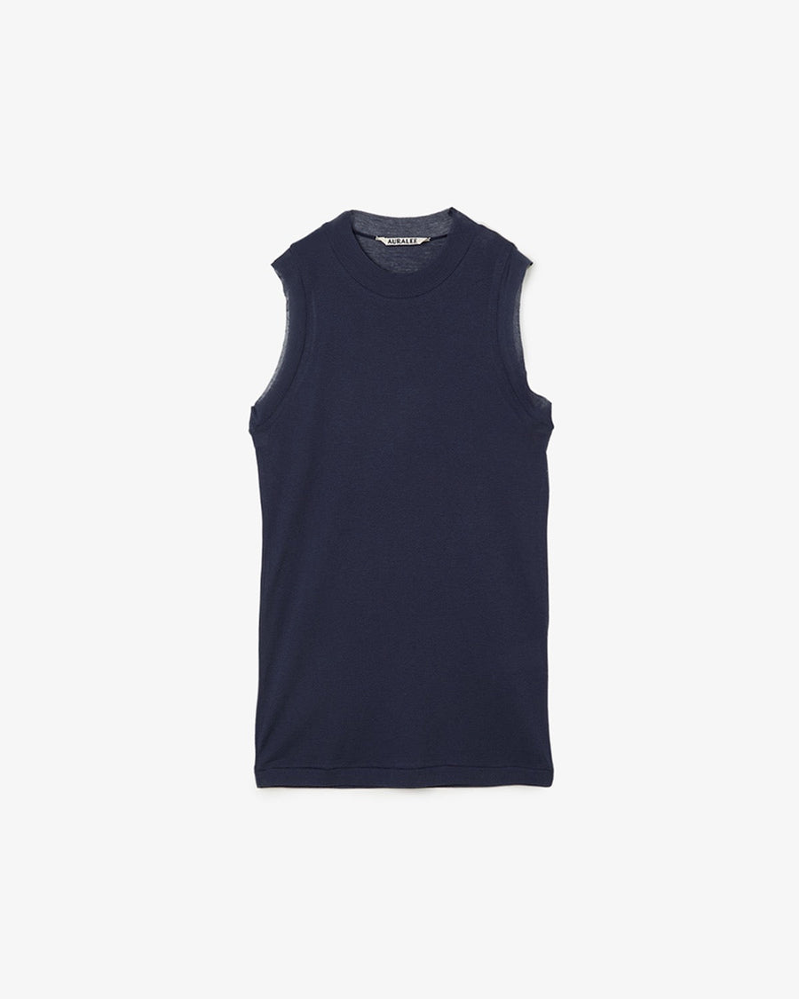 A slim-fit, sleeveless ribbed top crafted from ultra-fine, long-staple cotton on a rare high-gauge knitting machine, offering lightweight, refined translucence—AURALEE’s year-round staple.