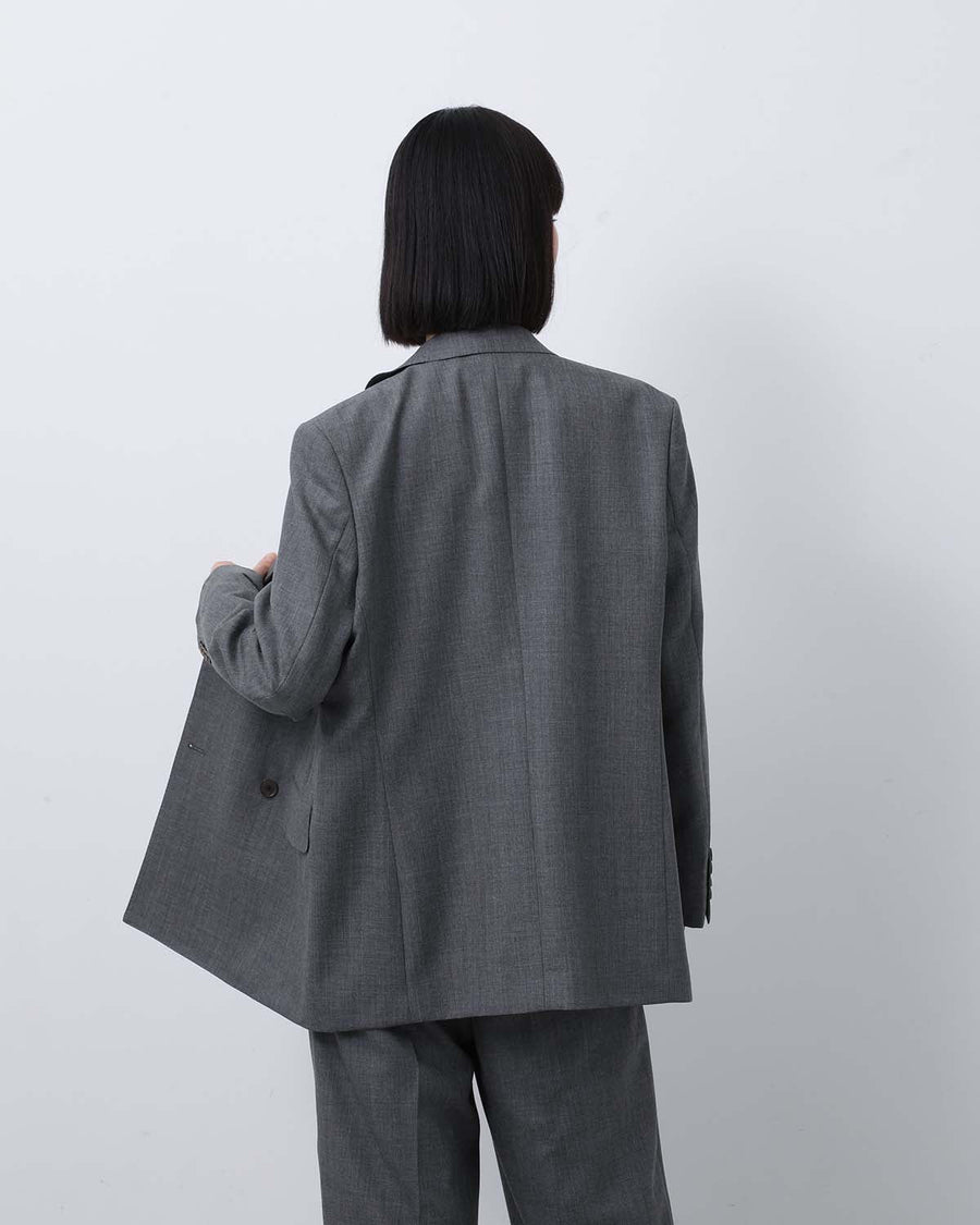 This lapel jacket is woven with Super 130’s super extra-fine Merino wool in the warp and Bluefaced Leicester wool in the weft.It combines softness and resilience, offering a luxurious feel and elegant texture.
