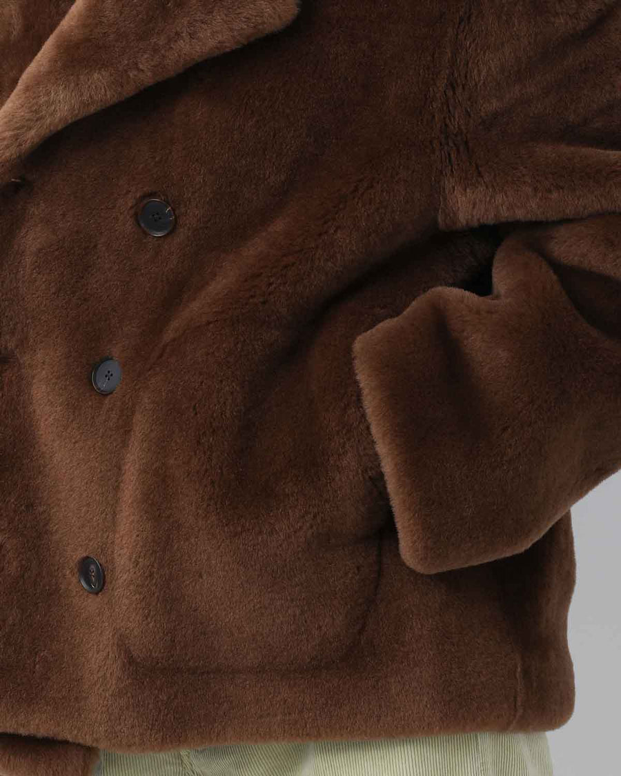 Wool-mouton P-coat in Turkish sheepskin, soft, voluminous, with a lightweight nappa-finished reverse.