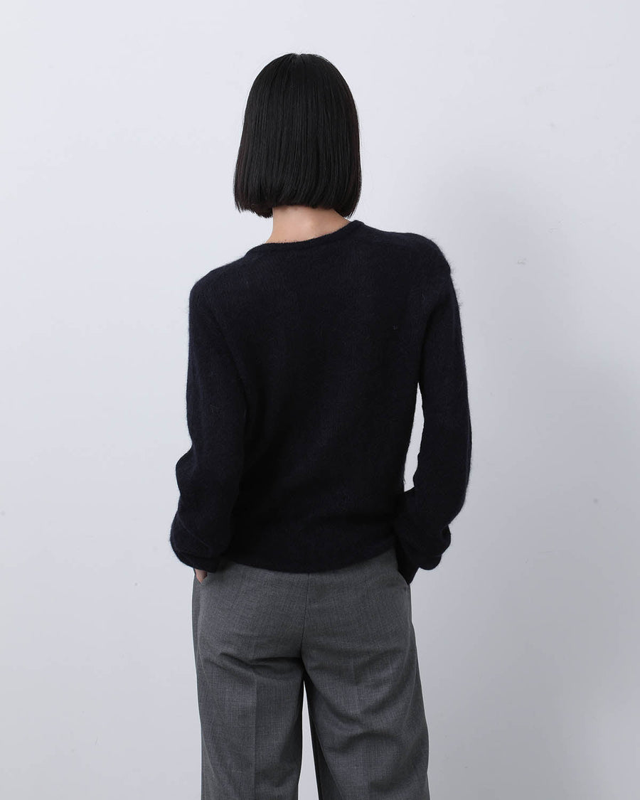 This pullover knit is luxuriously made from baby suri alpaca. Carefully knitted over time to highlight the delicate fibers, it features an exceptionally smooth texture.