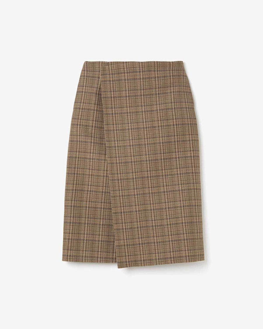 AURALEE SILK LINEN NEP CHECK WRAP SKIRT