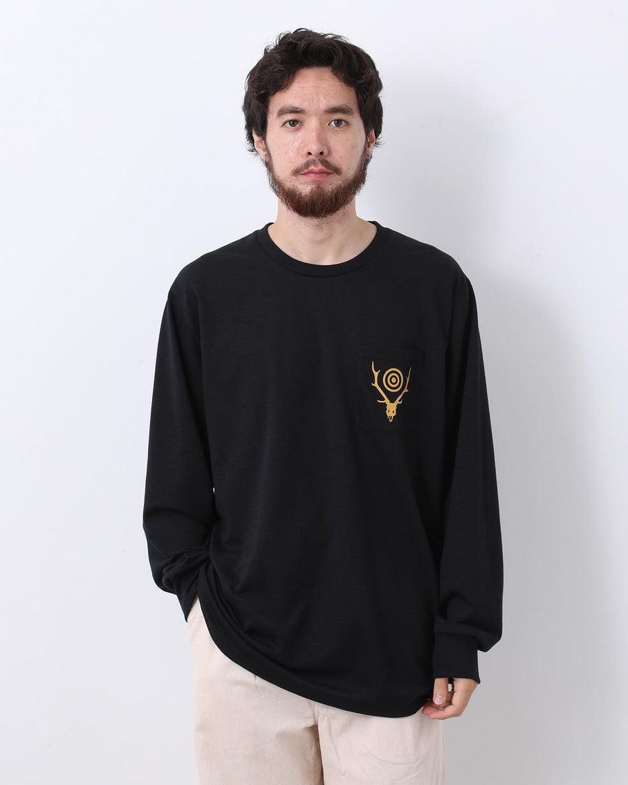 SOUTH2 WEST8 L/S ROUND POCKET TEE - CIRCLE HORN
