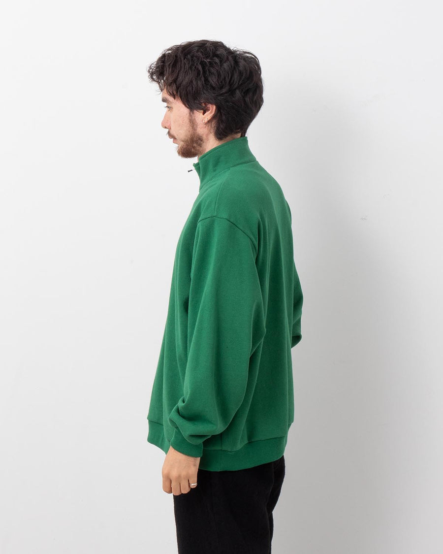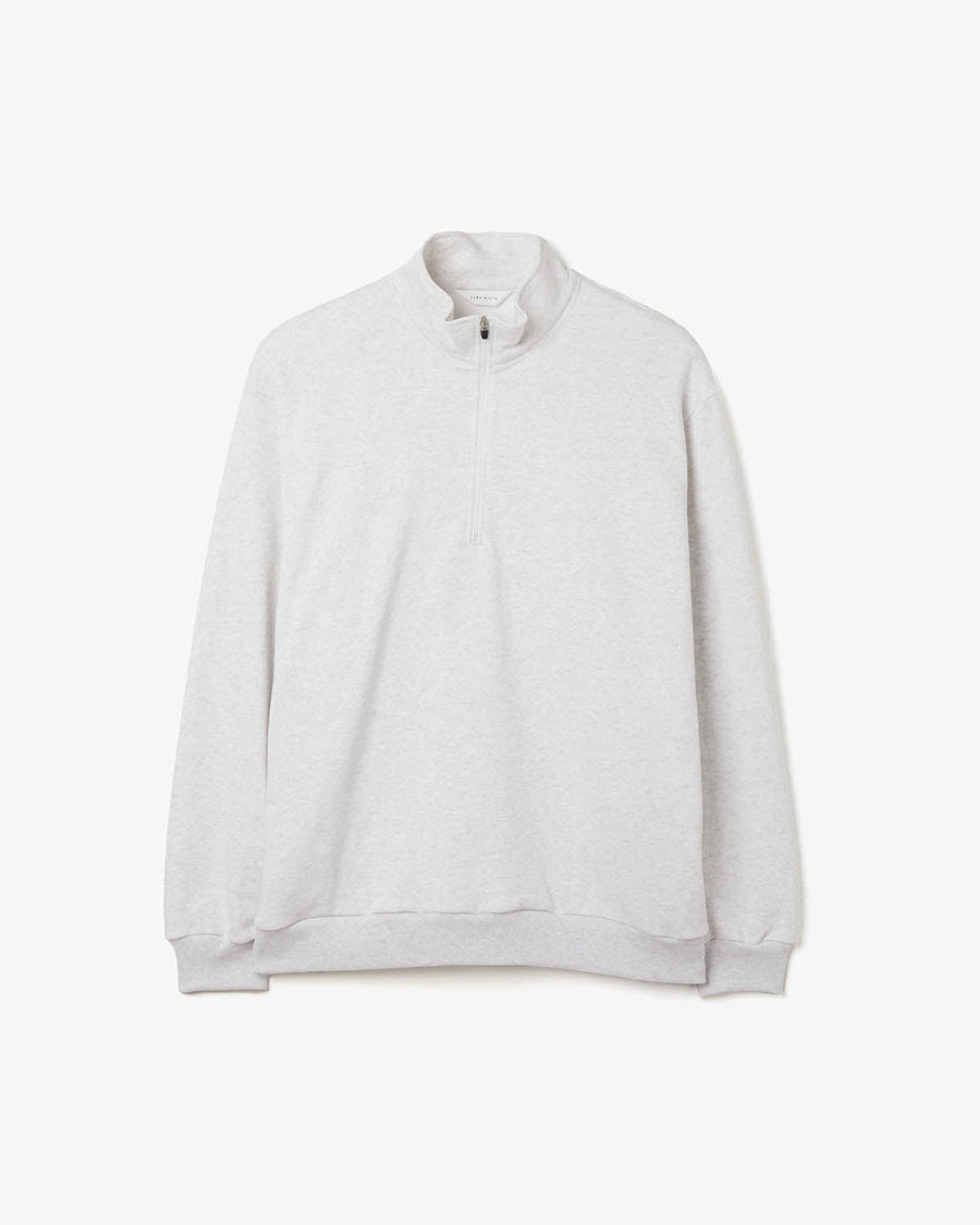 This half-zip pullover is made from dry-touch American cotton fleece, offering a crisp texture and everyday wearability with moderate thickness.