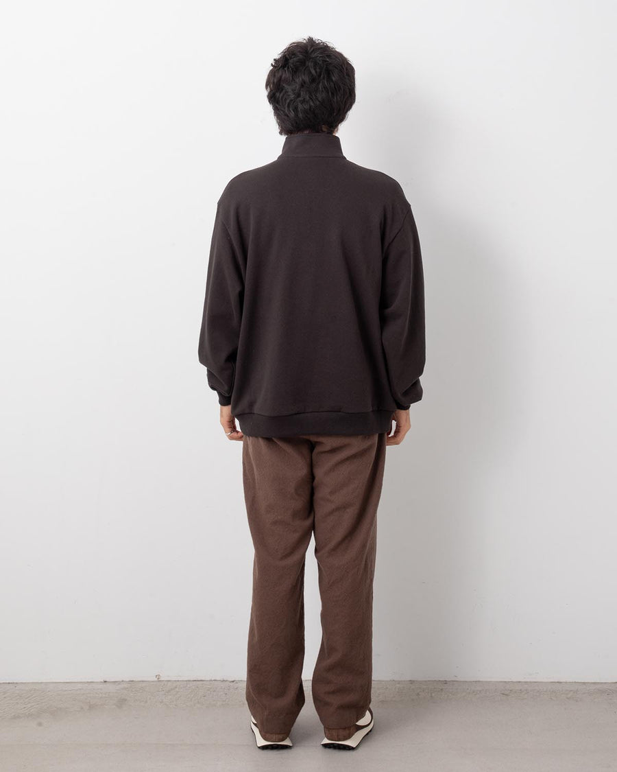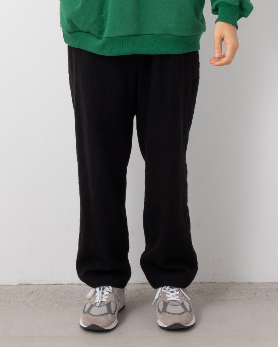 These relaxed two-tuck pants are made from 100% wool serge, featuring a soft, voluminous texture from fulling and a washed finish for a casual, lived-in feel—perfect for autumn and winter styling.
