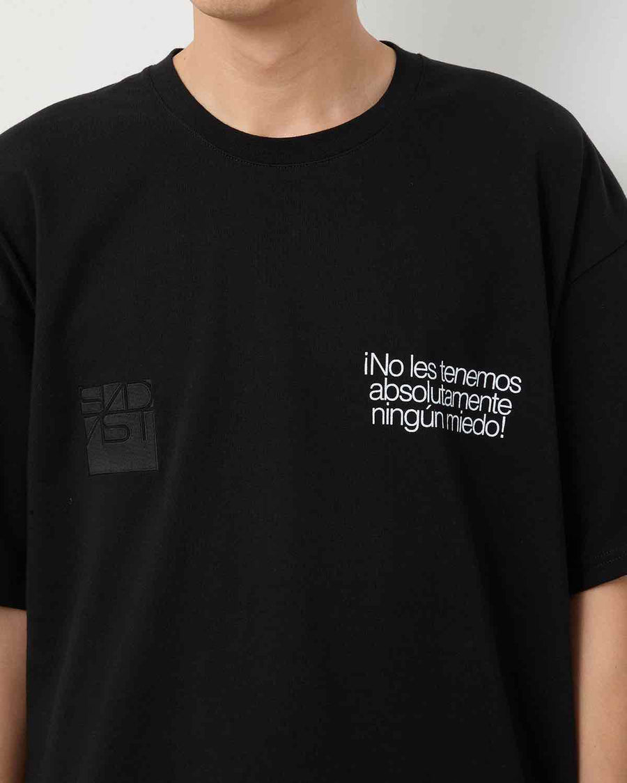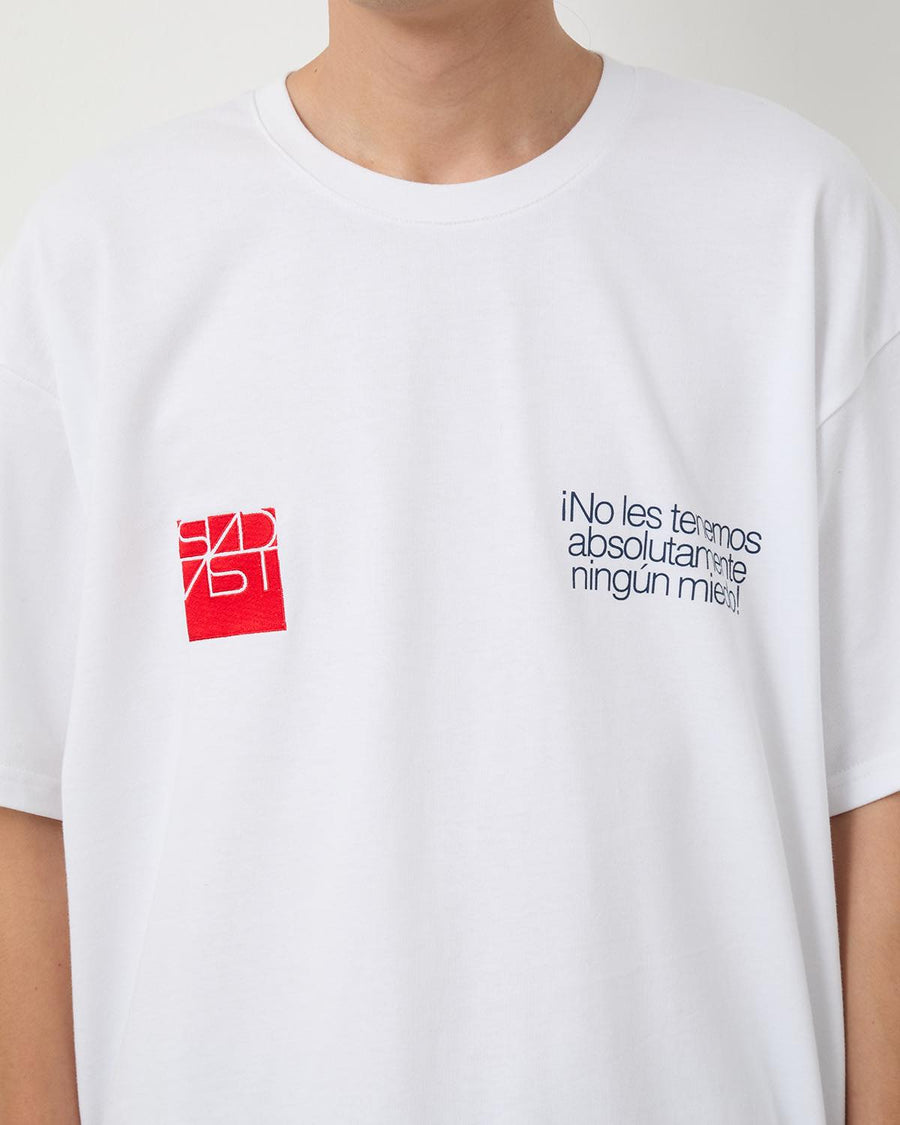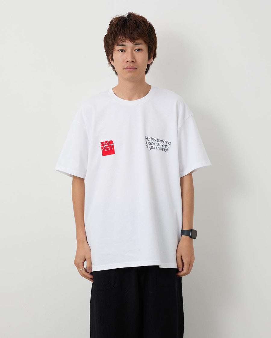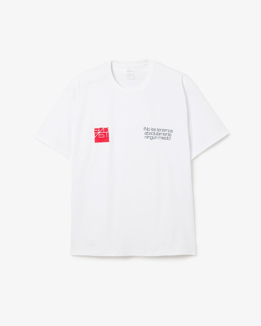 Short-sleeve T-shirt made with 9.5oz heavy jersey from Tokyo brand Knuu, featuring embroidered and printed SANDINISTA archive graphics.