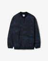 The HALF ZIP JACKET is a voluminous update of the classic baseball windbreaker, made from camo nylon Taslan taffeta with insulation, water, wind, and UV protection.