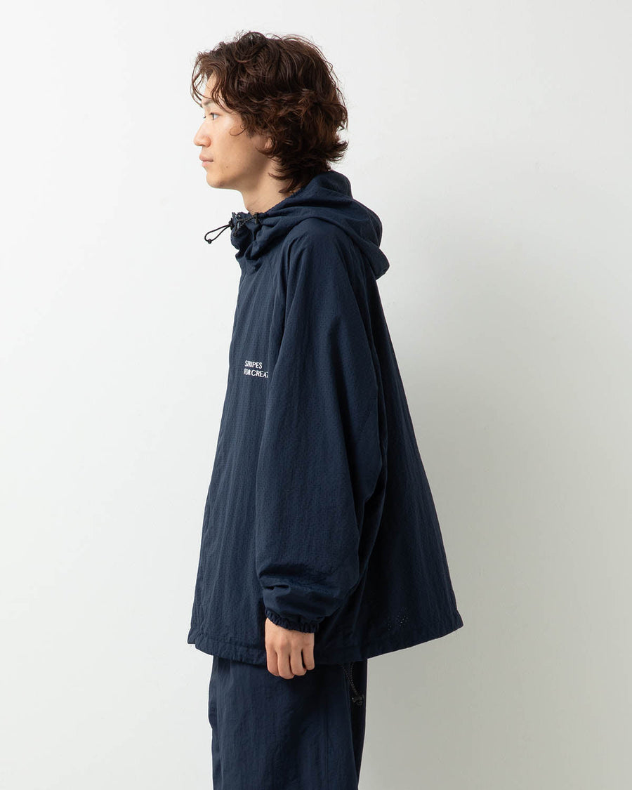 パンチング加工を施したメッシュのような表情を持たせたナイロンを使用した「PUNCHING NYLON HOODY 」です。