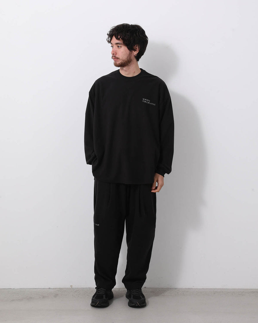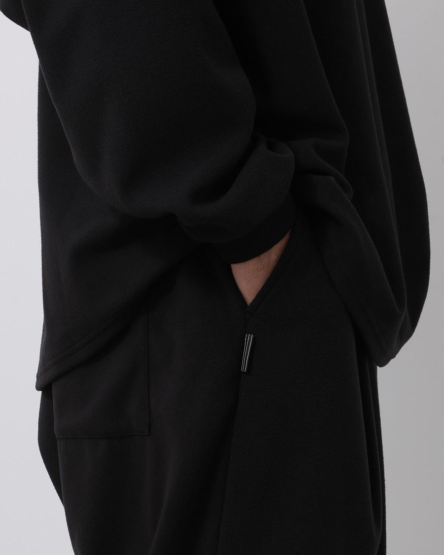 腰回りを大きく、裾幅を広くワイドなシルエットにアレンジしたタック入りワイドテーパードフリースパンツです。