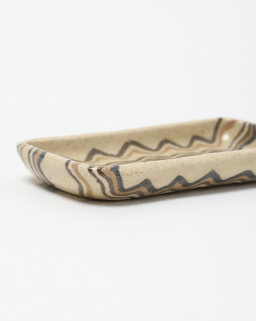 栃木県は益子町を拠点に活動する作家〈坂下花子〉が“練り上げ“と呼ばれる技法を用いて制作した⻑⾓⼩⽫です。