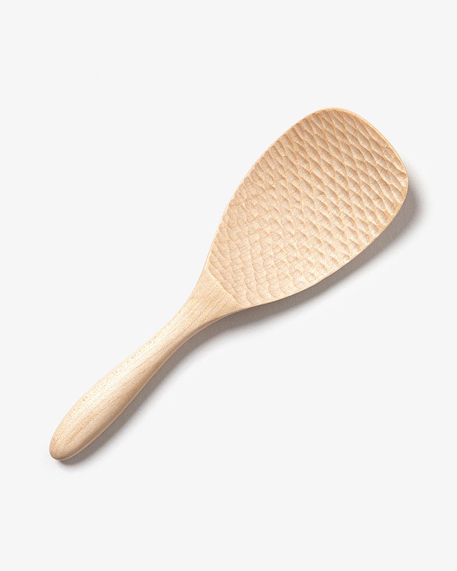 An essential in every Japanese household, this small rice scoop or 'shamoji' features a hammered design to help stop rice sticking.