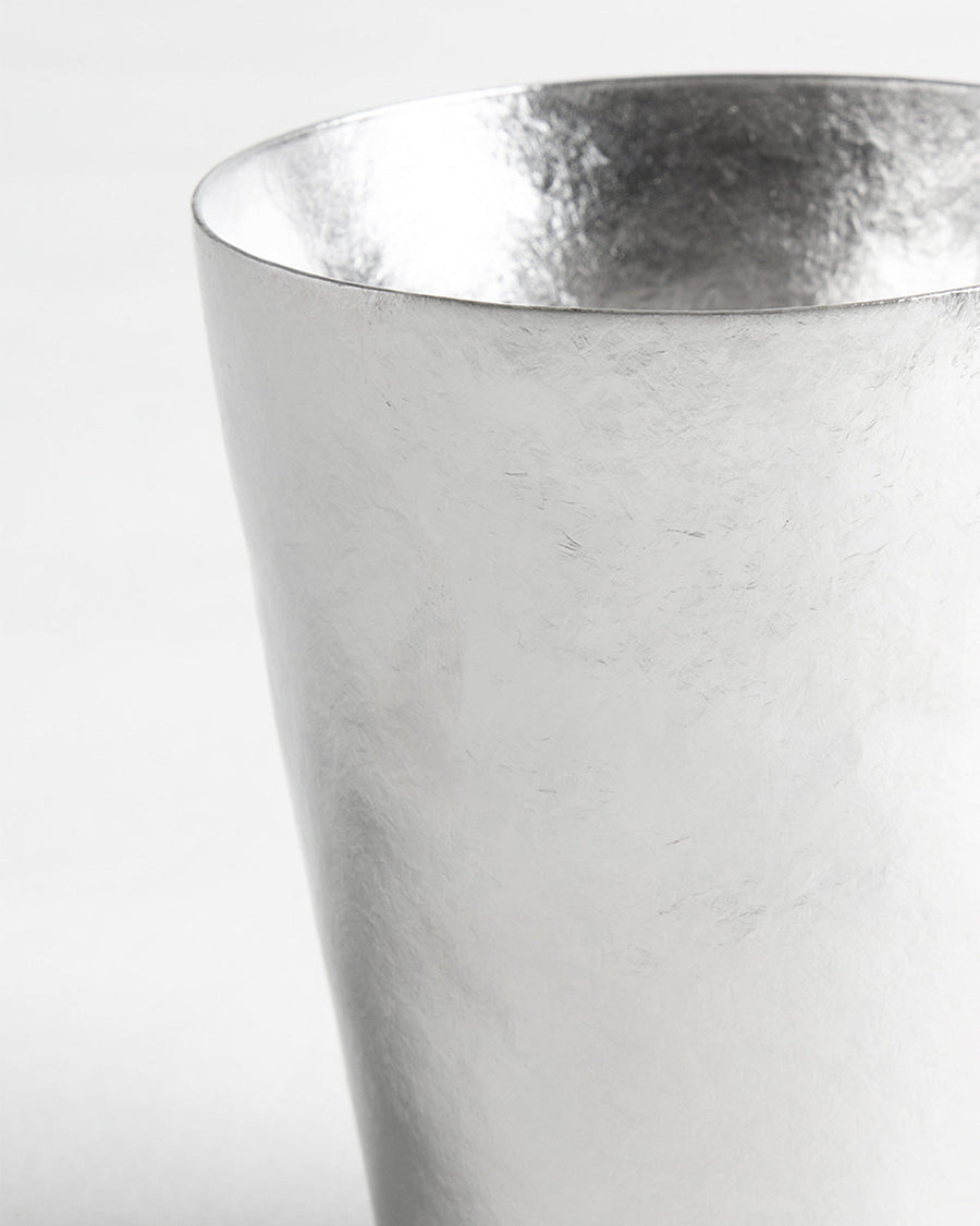 A perfect vessel for your favorite drink, this tumbler is crafted entirely from thinly hand hammered titanium with a double-walled vacuum sealed construction for thermal insulation.