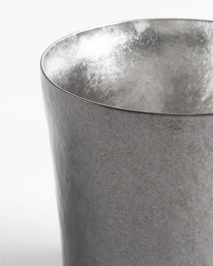 A perfect vessel for your favorite drink, this tumbler is crafted entirely from thinly hand hammered titanium with a double-walled vacuum sealed construction for thermal insulation.