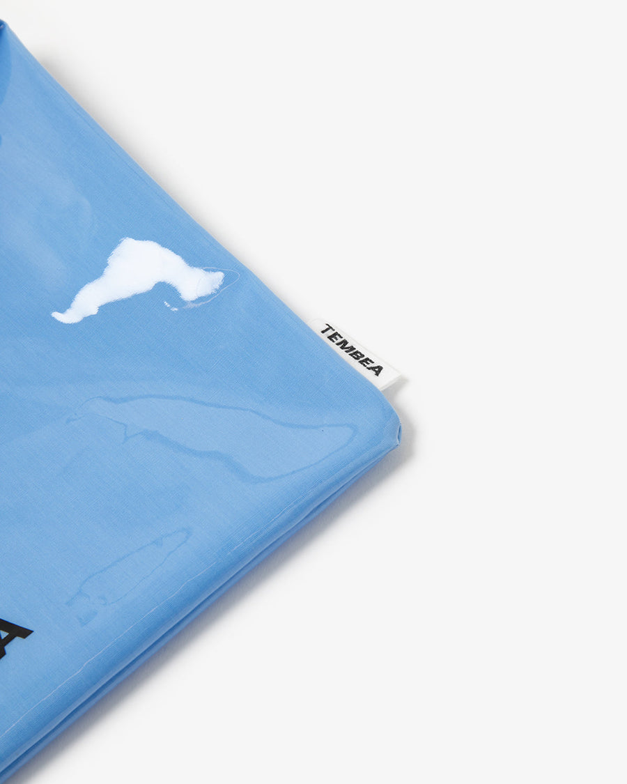 “AZUMA BAG SMALL” clear bag with PVC-coated fabric, offering waterproof durability and easy maintenance for everyday use—even in light rain.