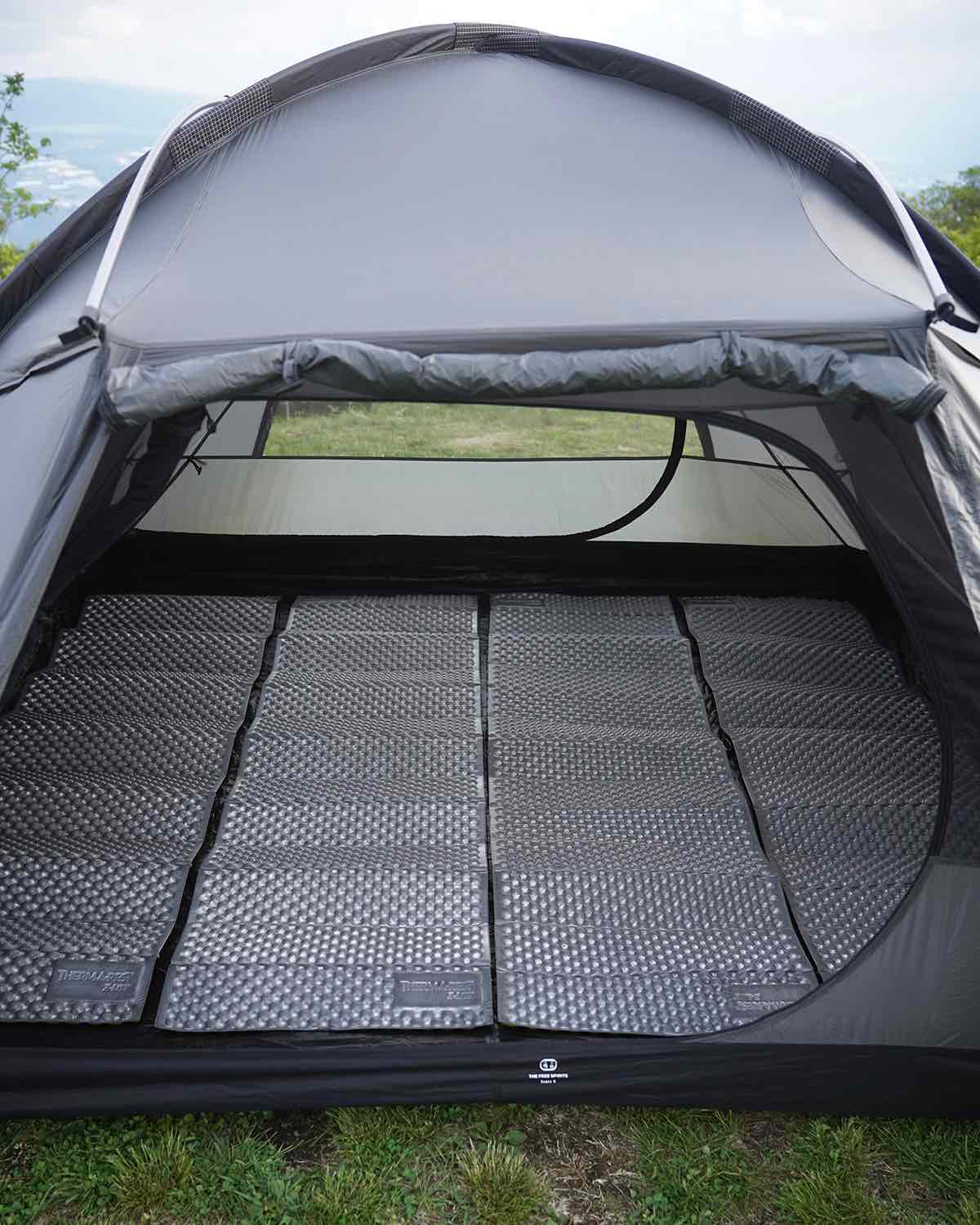 The Free Spirits STARS 4 is a spacious 3-person dome tent with ridge poles and dual-layer doors, adaptable for camping or alpine use.