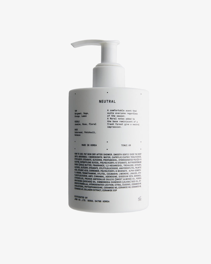 BODY LOTION NEUTRAL 300ML is a unisex body lotion with a soft, neutral fragrance suitable for any season.