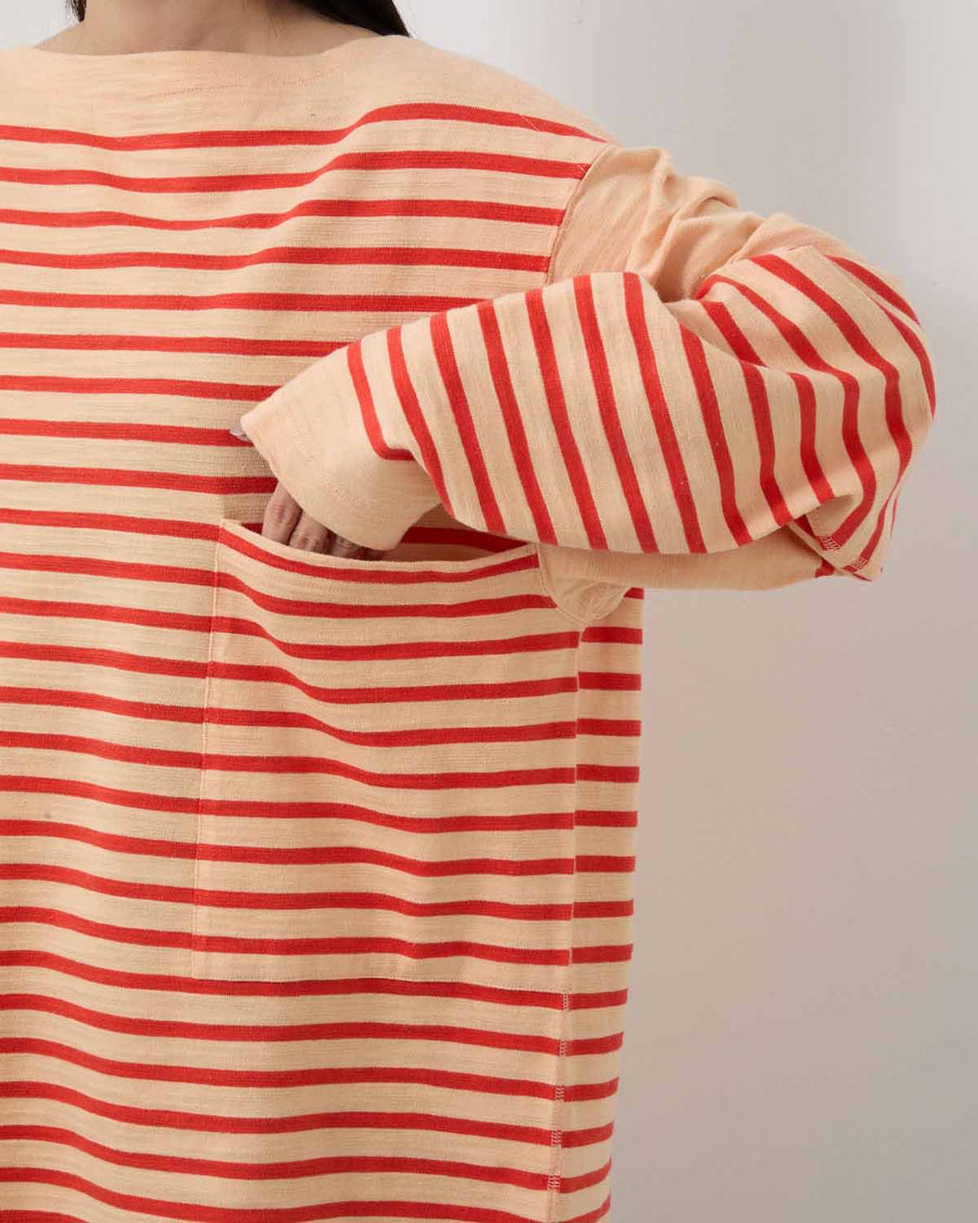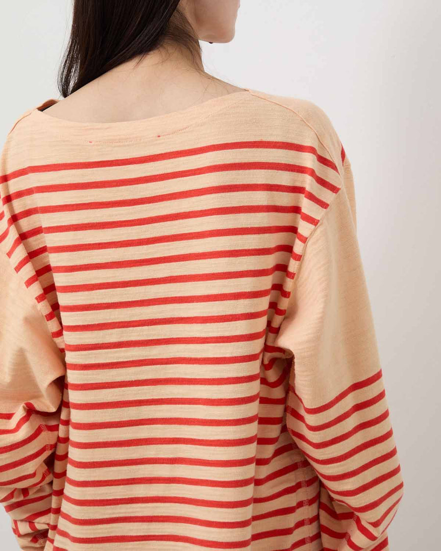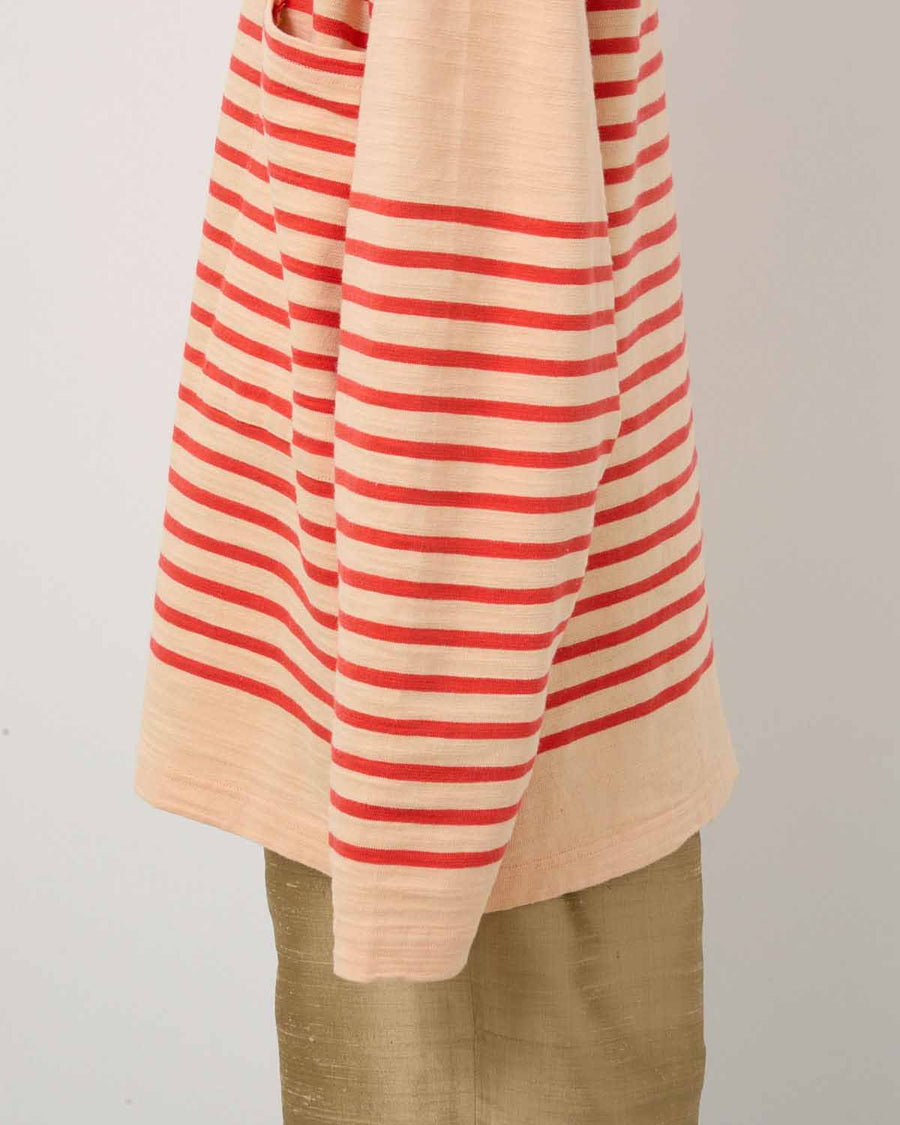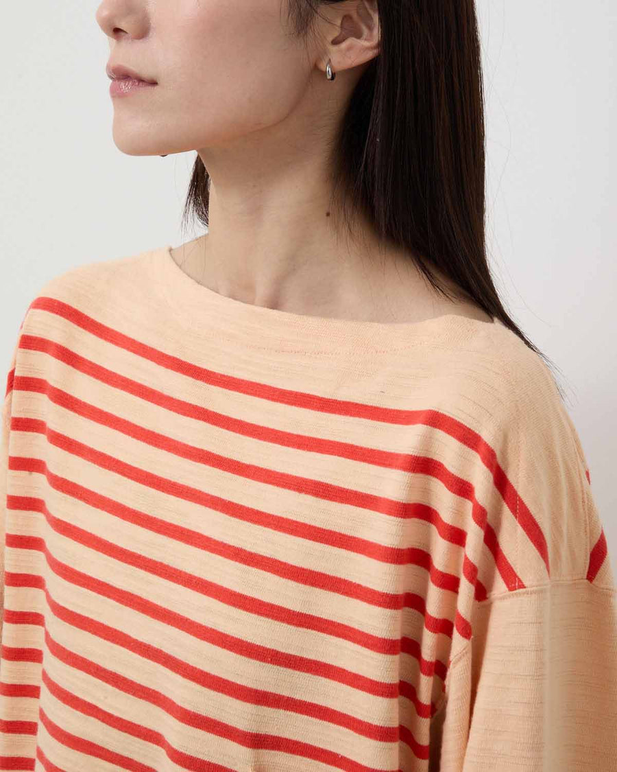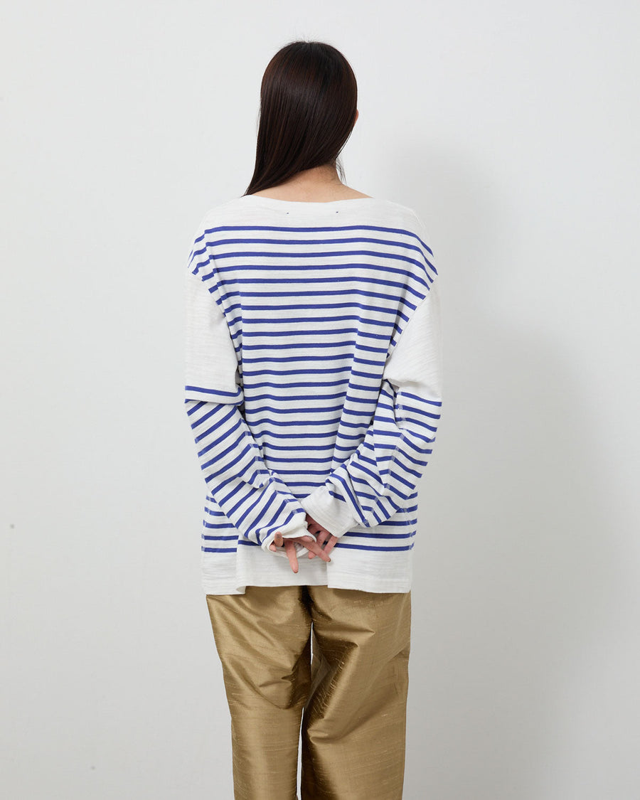 An original panel-border cutsew made with a exclusive fabric, combining slub and straight yarns for rich texture and a relaxed feel.