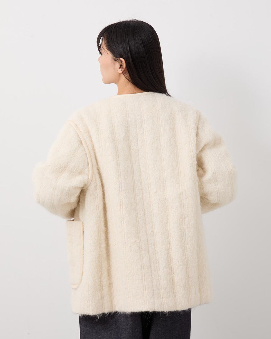 Padded shaggy jacket made from premium Suri alpaca, with a brushed texture for casual elegance and a lightweight feel.