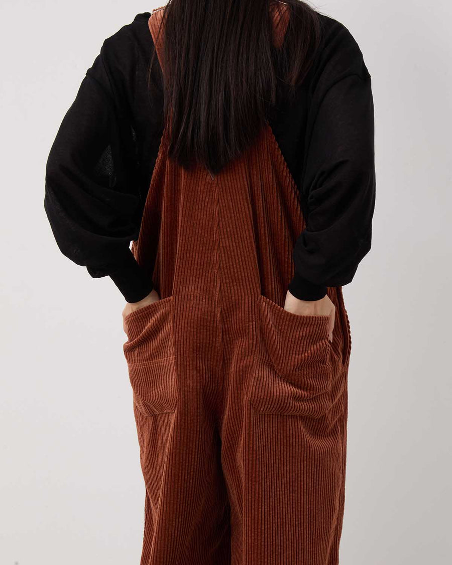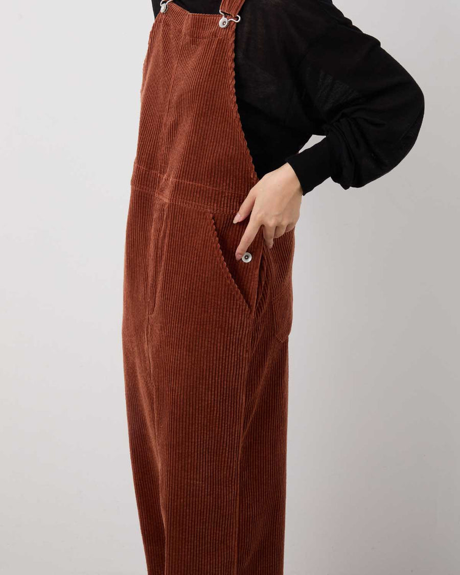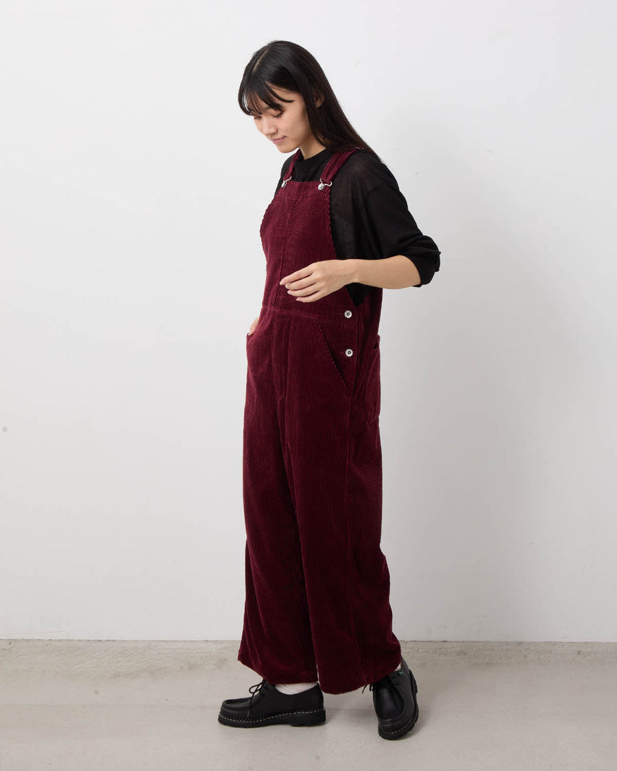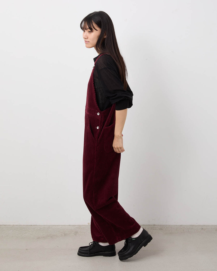 Overalls in mid-weight Japanese corduroy with nidom finish for a worn-in look, featuring classic details and a washable leather patch on the back.