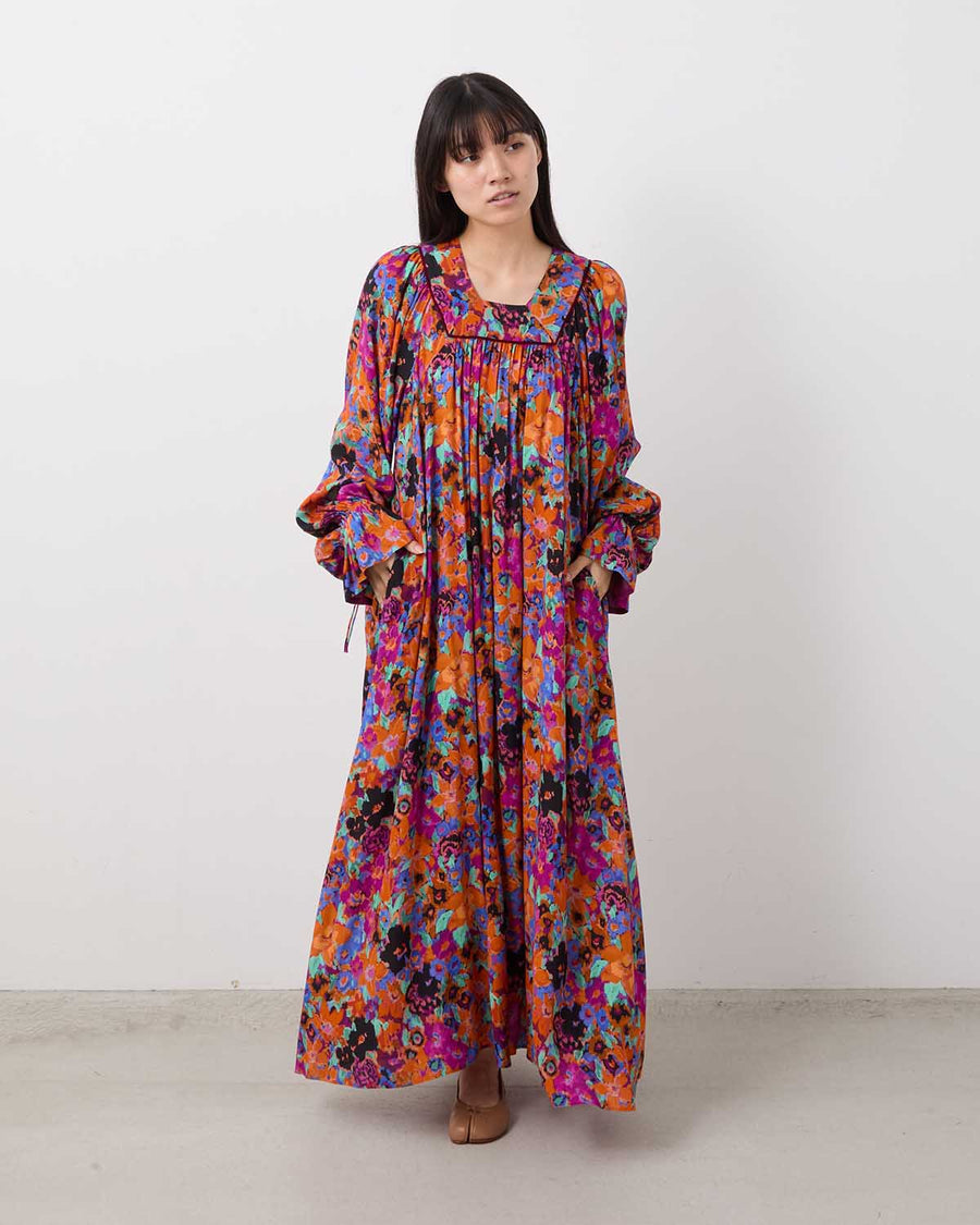 BOTANICAL PRINT DRESS in viscose print fabric by France’s DEVEAUX, featuring a soft, vintage-inspired texture, square neckline, and relaxed, seasonless fit.
