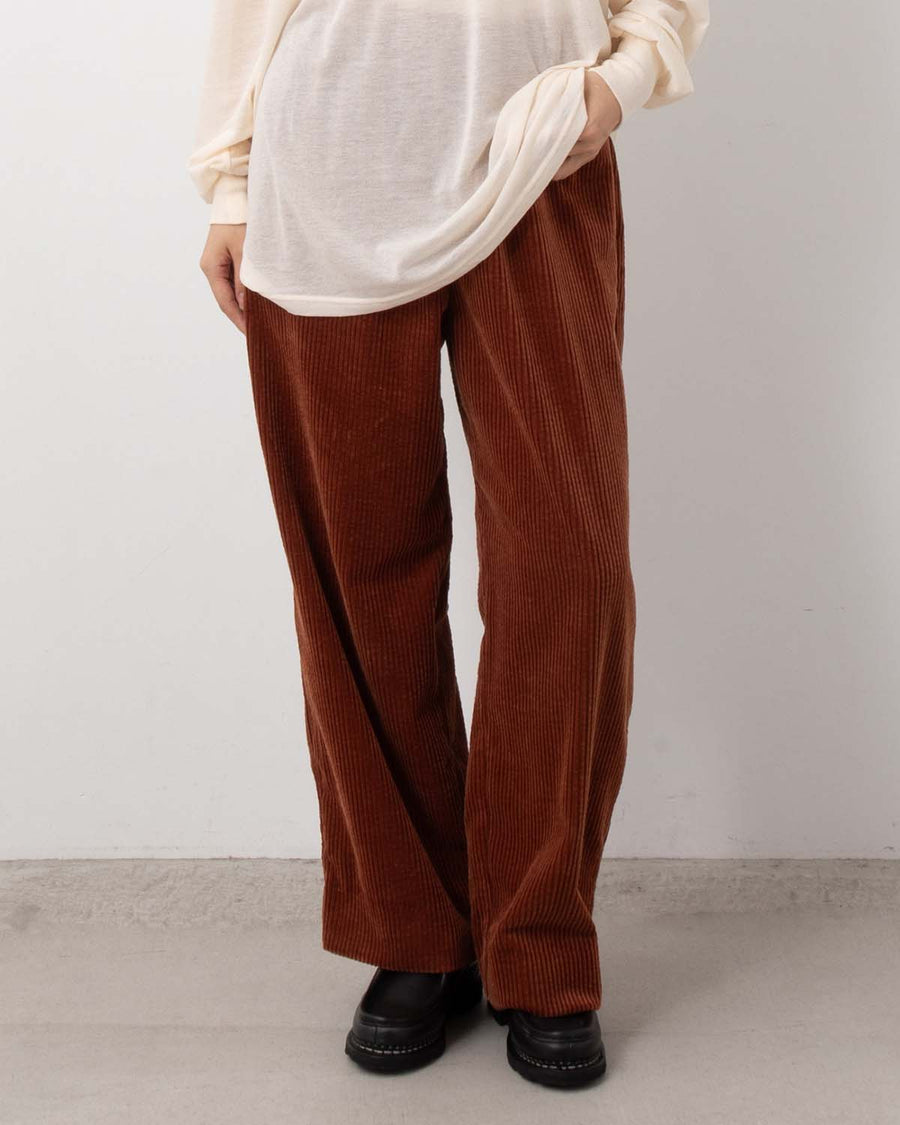 TOURNON. signature “CORDUROY PANTS” in mid-weight Japanese corduroy with nidom finish for a worn-in look. Wide silhouette with clean, simple lines.