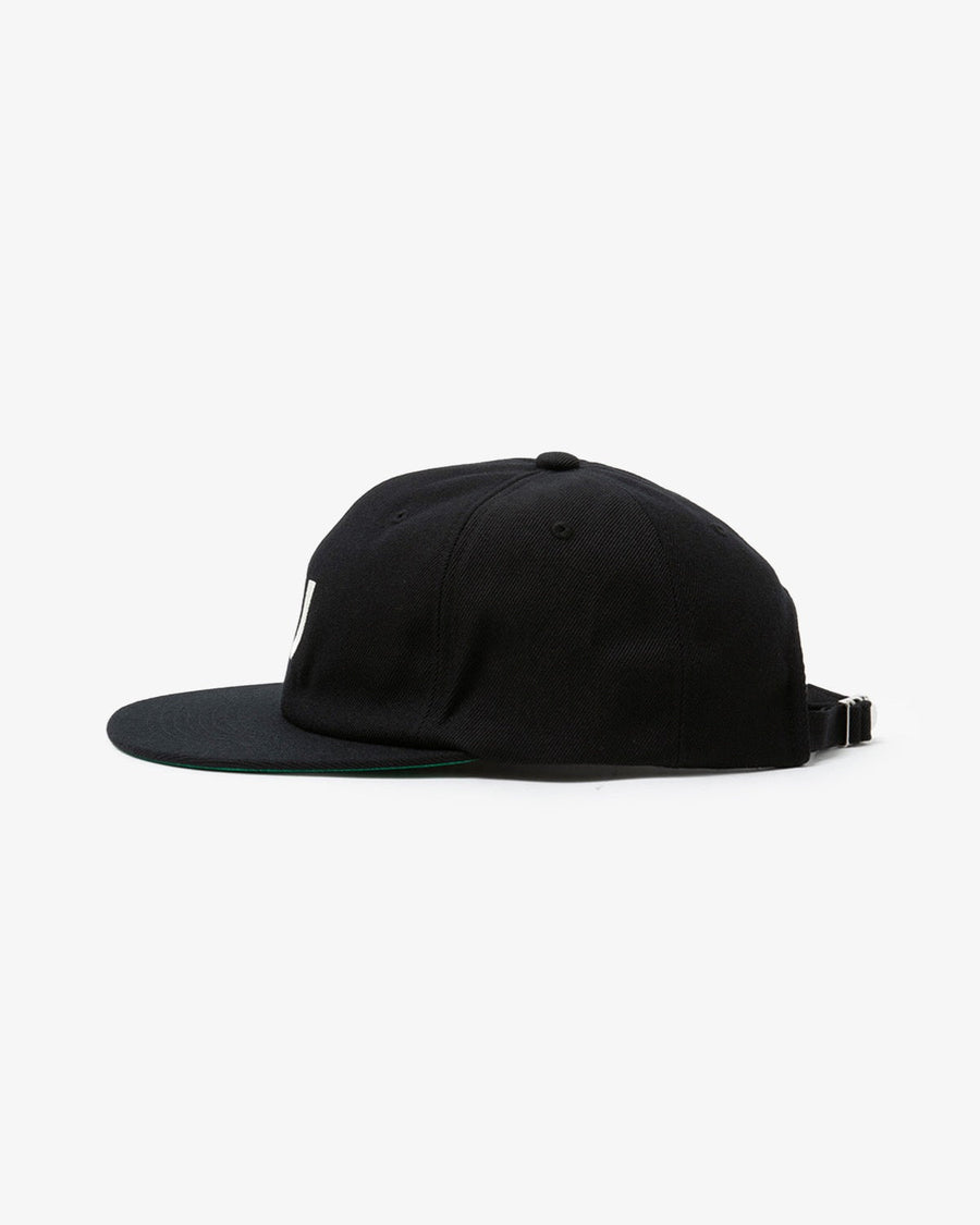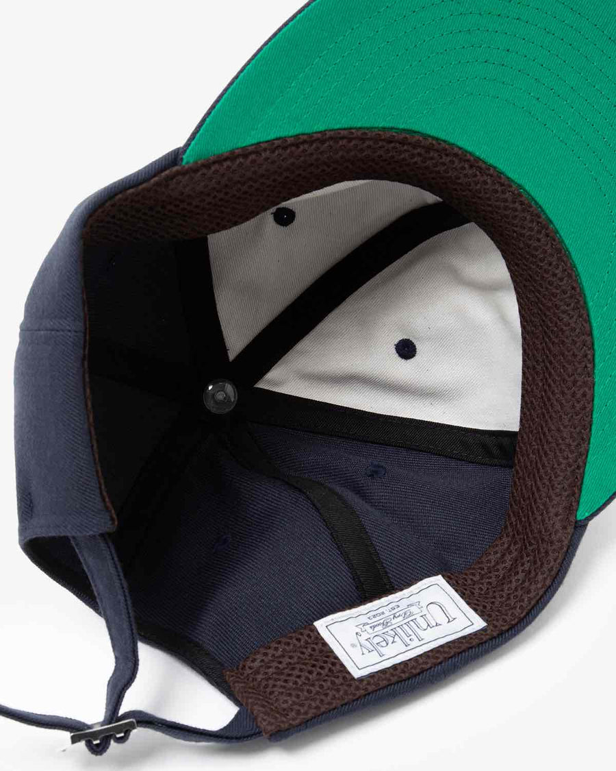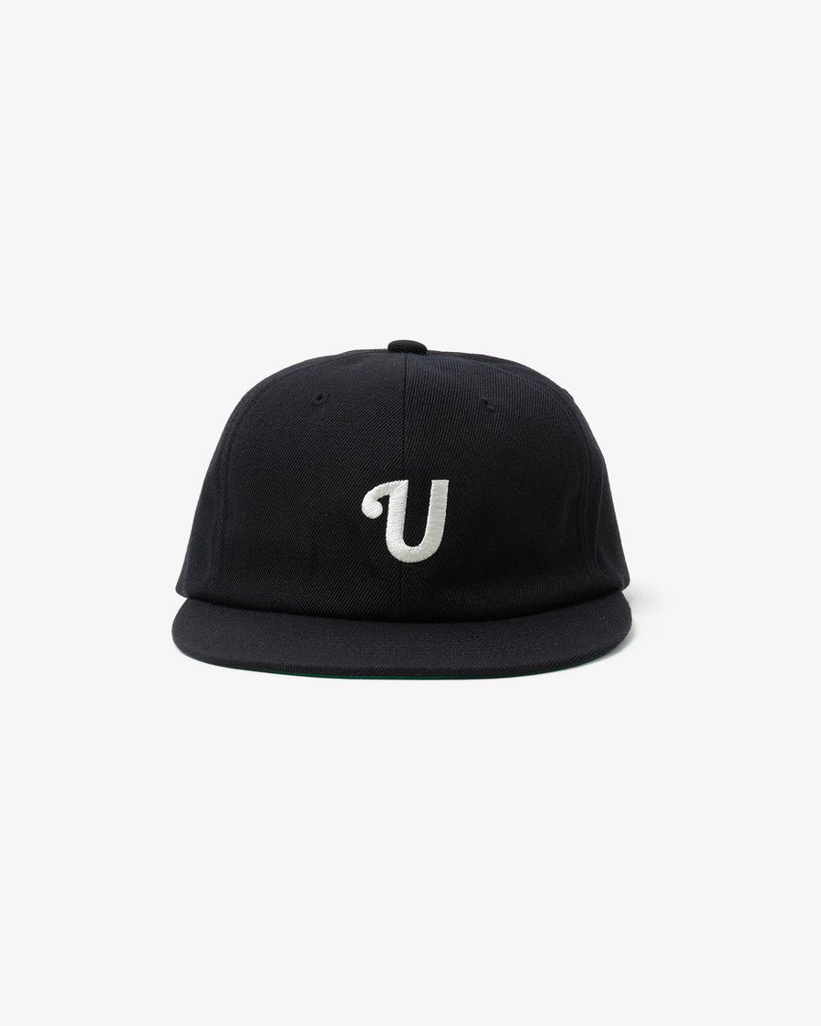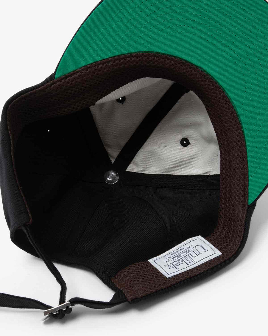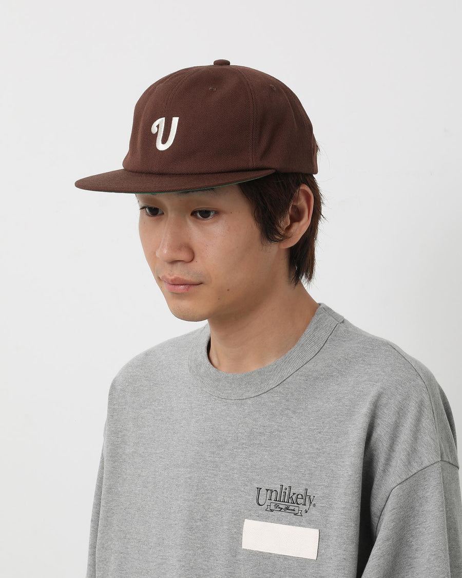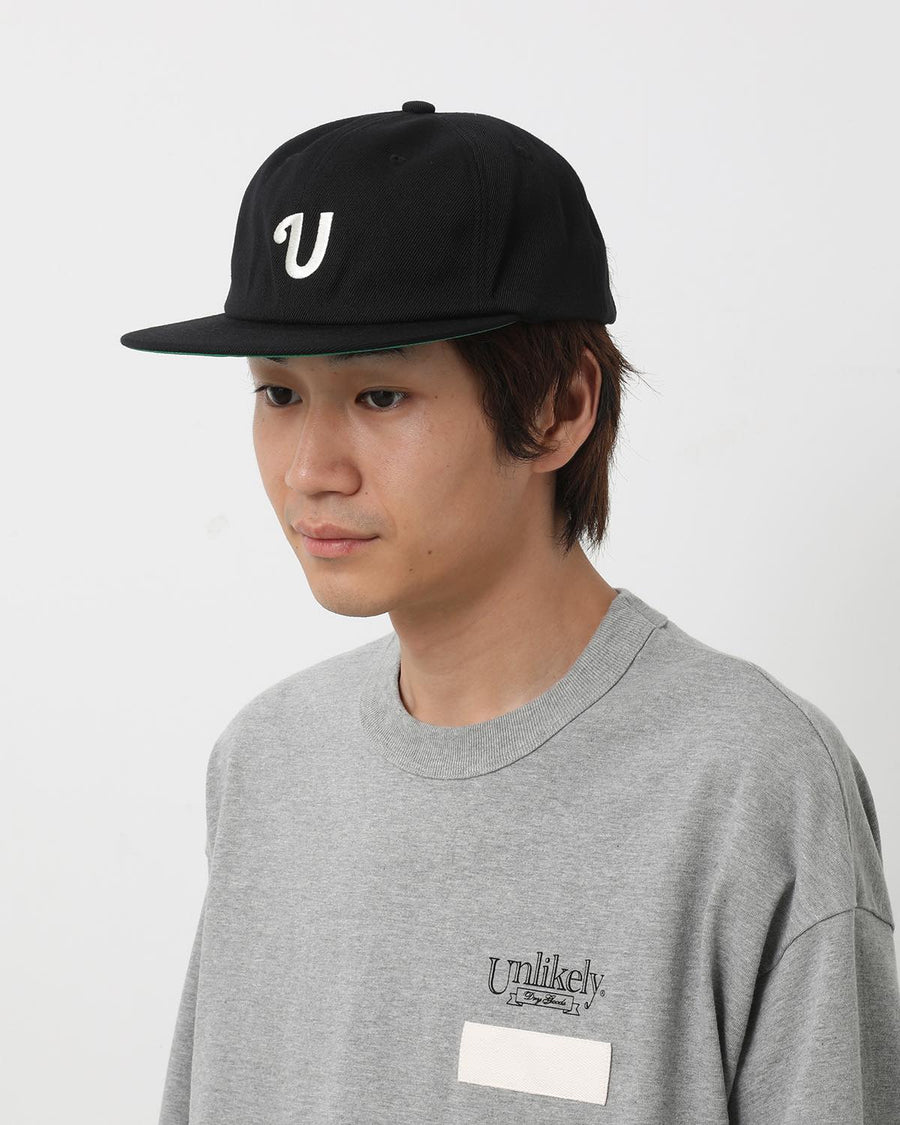 The UNLIKELY TEAM CAP is a vintage-style baseball cap with a “U” logo and a mesh sweatband for breathability.