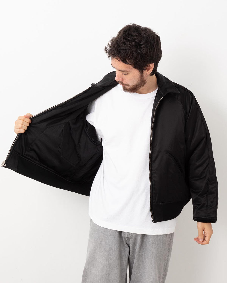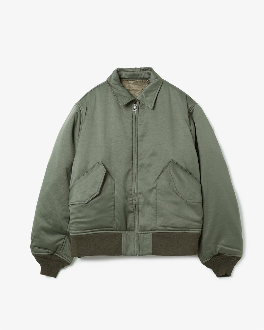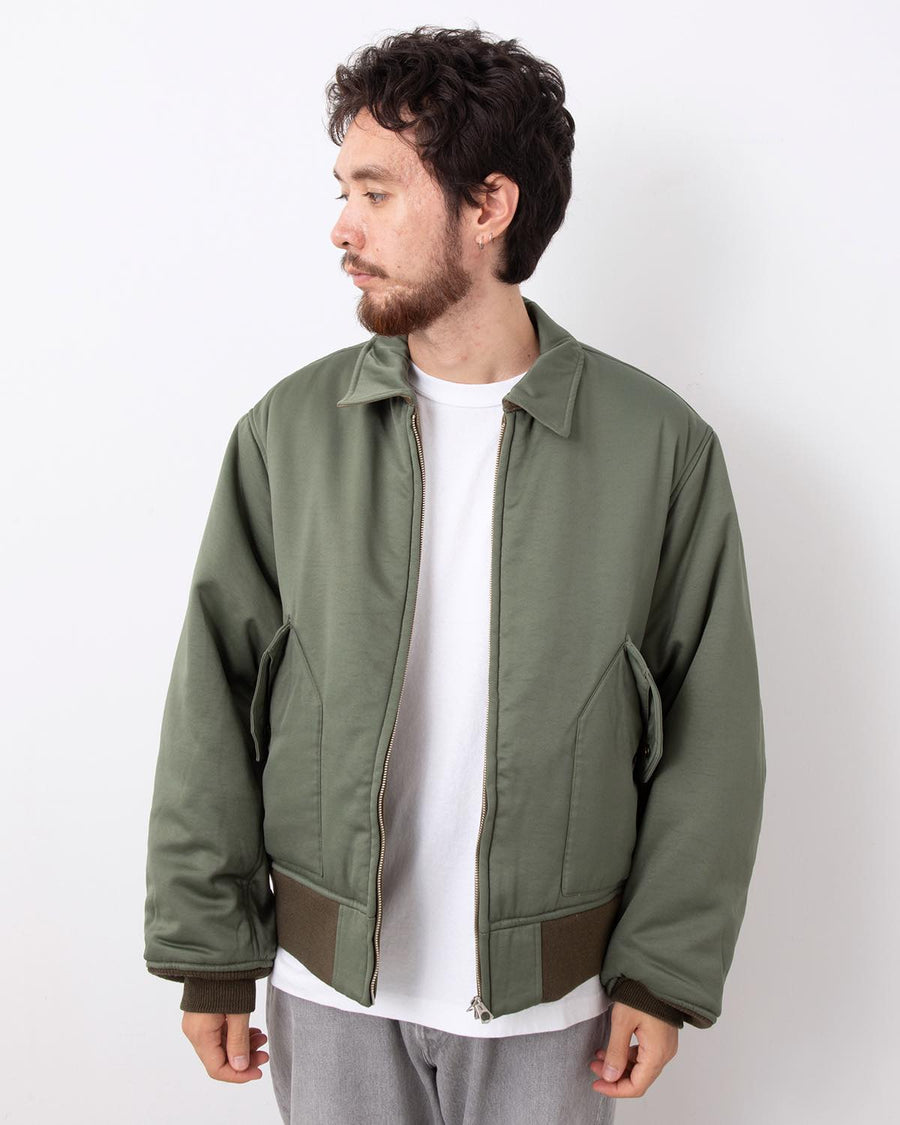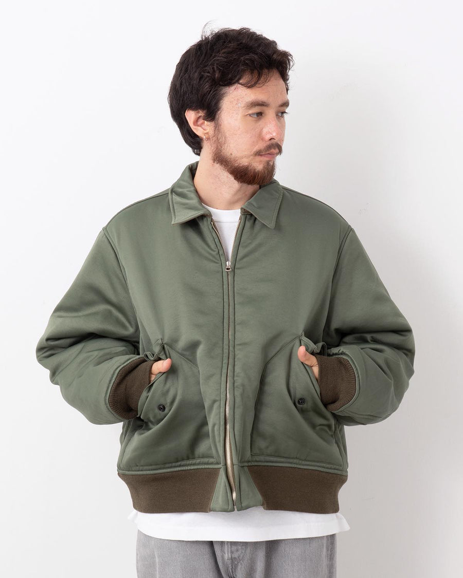 This reversible jacket combines a 1970s U.S. military CWU flight jacket with a Yokosuka souvenir jacket, offering both military and souvenir jacket elements in one piece. It represents the theme of ON and OFF.