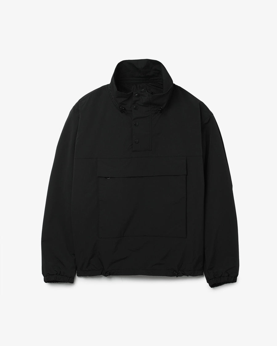 異なる性質をもつナイロン糸を使用した高密度タフタ素材のプルオーバージャケットです。