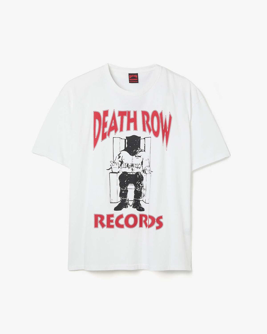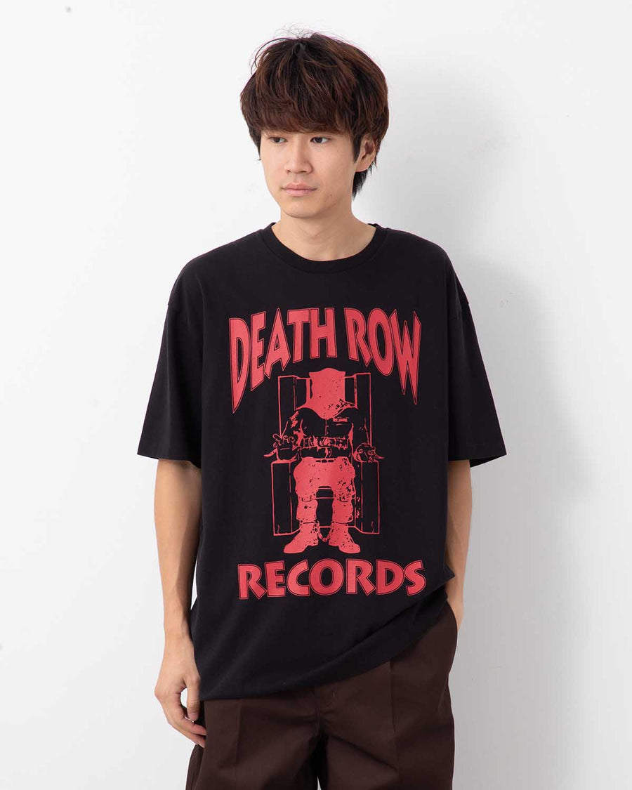 This is a collaboration between the iconic 1990s hip-hop label Death Row Records and WACKO MARIA, featuring bold front logos and graphics, with a Gothic-style brand logo on the back.