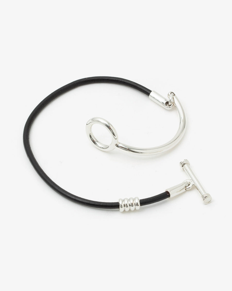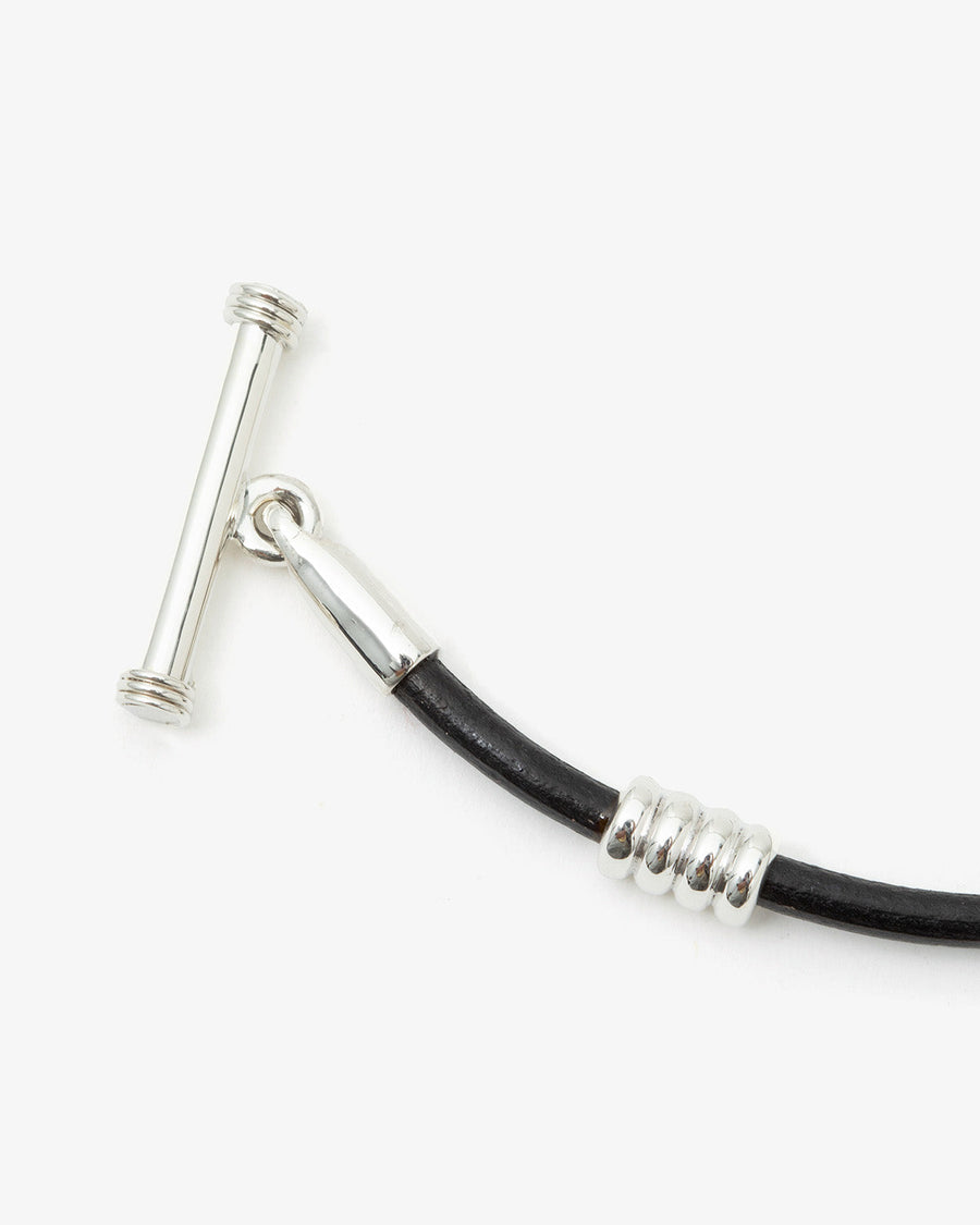Featuring a leather cord design, it embodies the charm of classic silver jewelry.