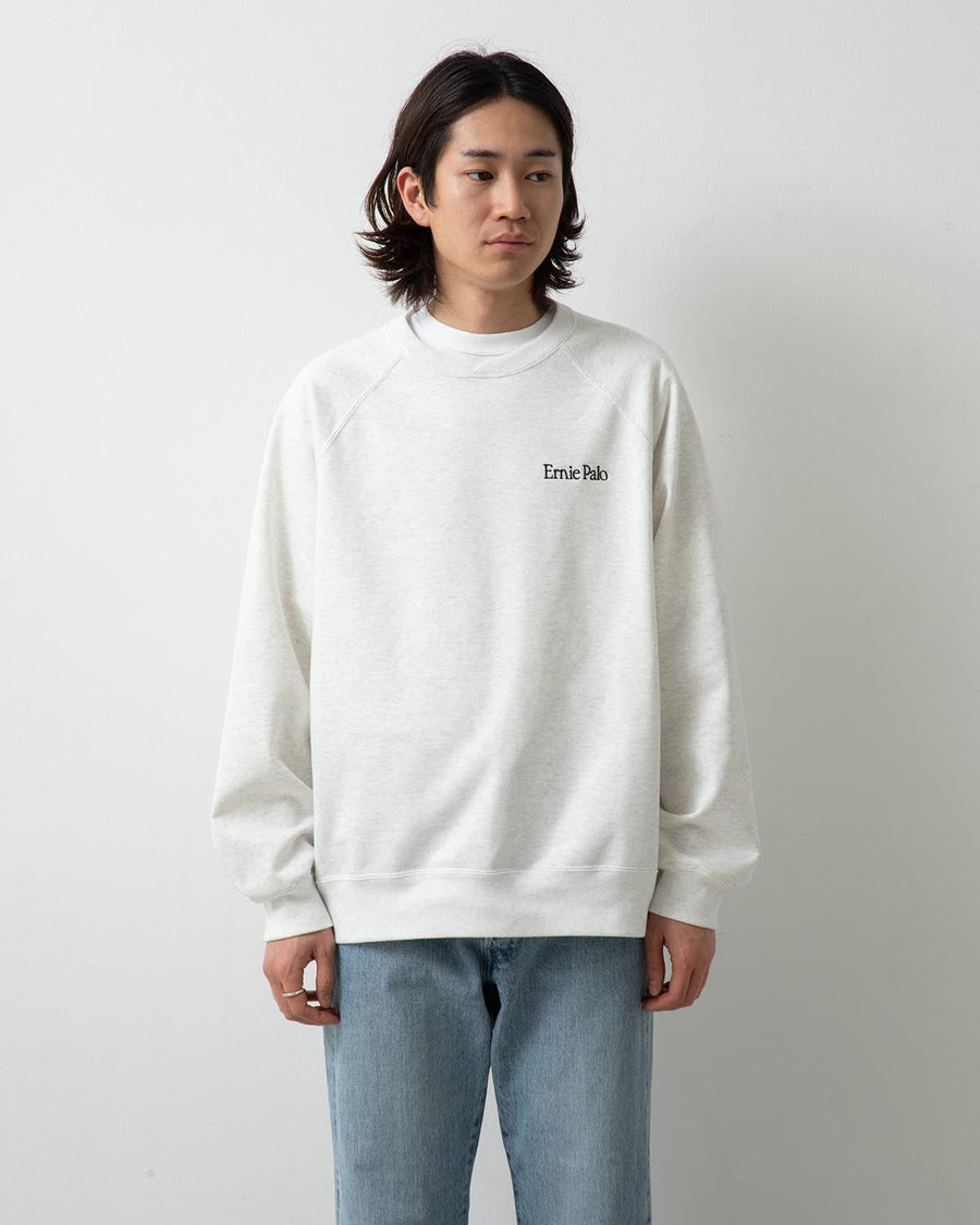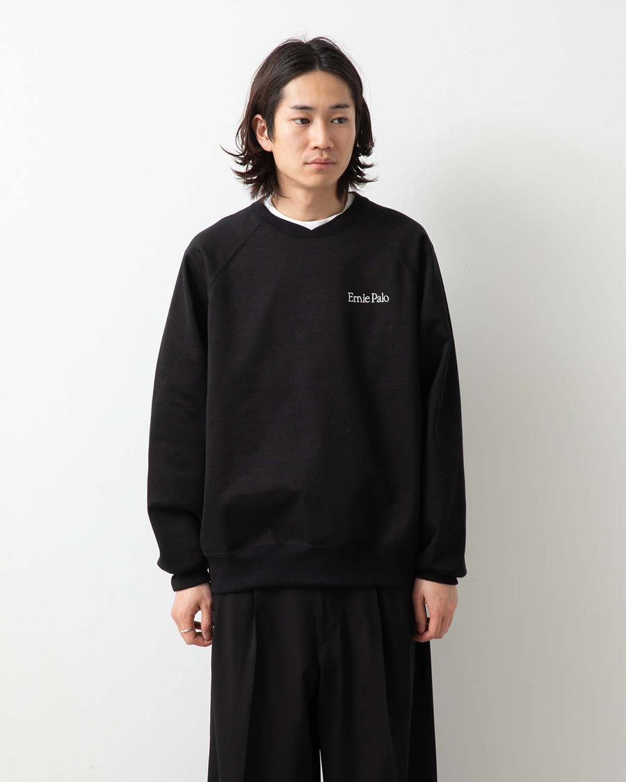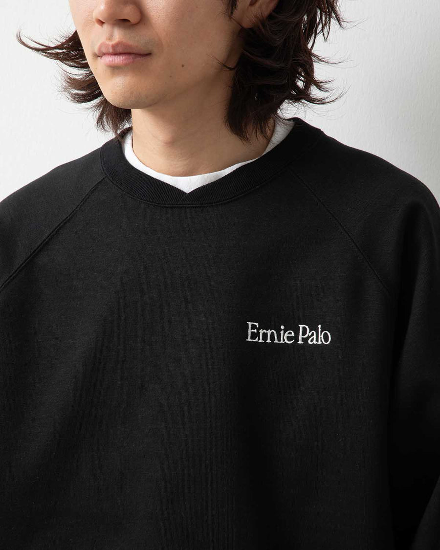左胸に配したブランドロゴ刺繍や交差したネックリブなど、〈Ernie Palo〉らしいベーシックなデザインです。