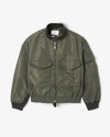 U.S.NAVY TYPE G-8 WEP JACKETから着想を得た、襟や逆開ファスナー、サイドポケットでシルエットを楽しめる実用的な仕様です。