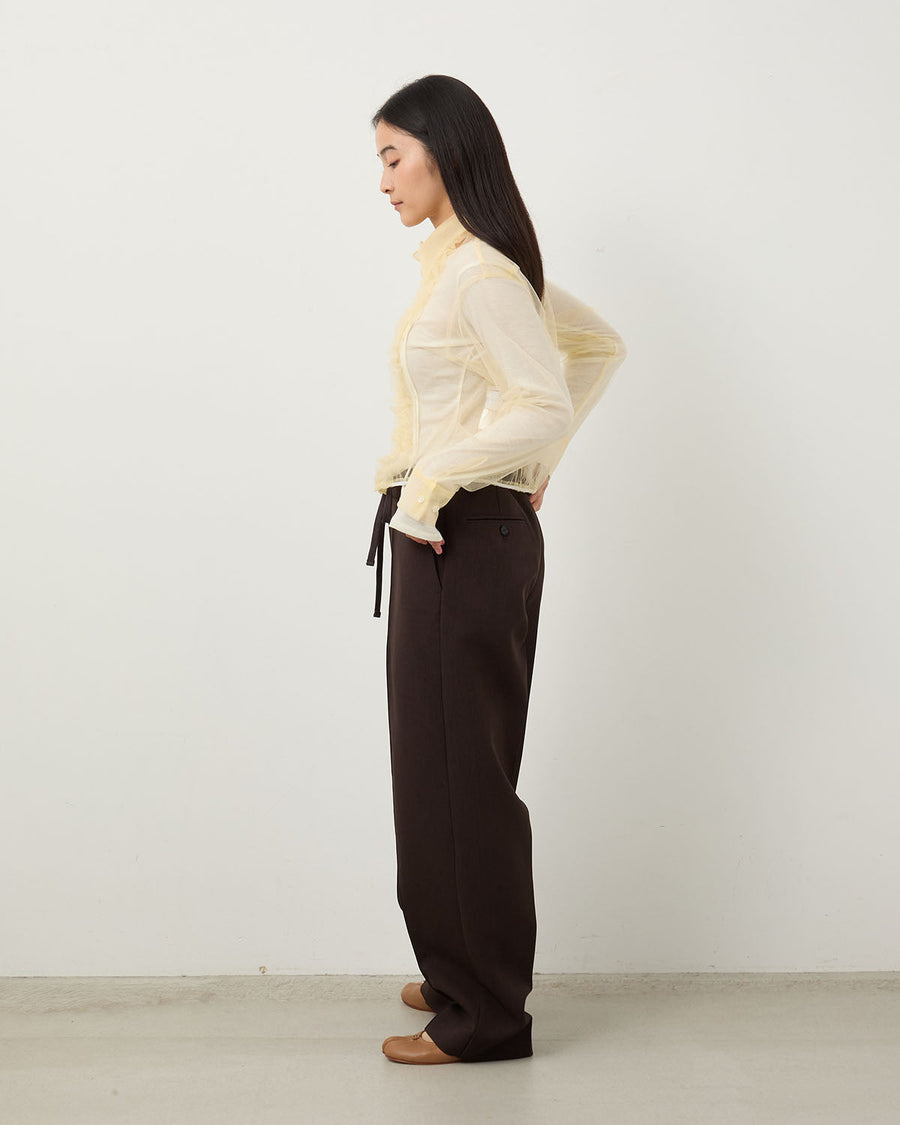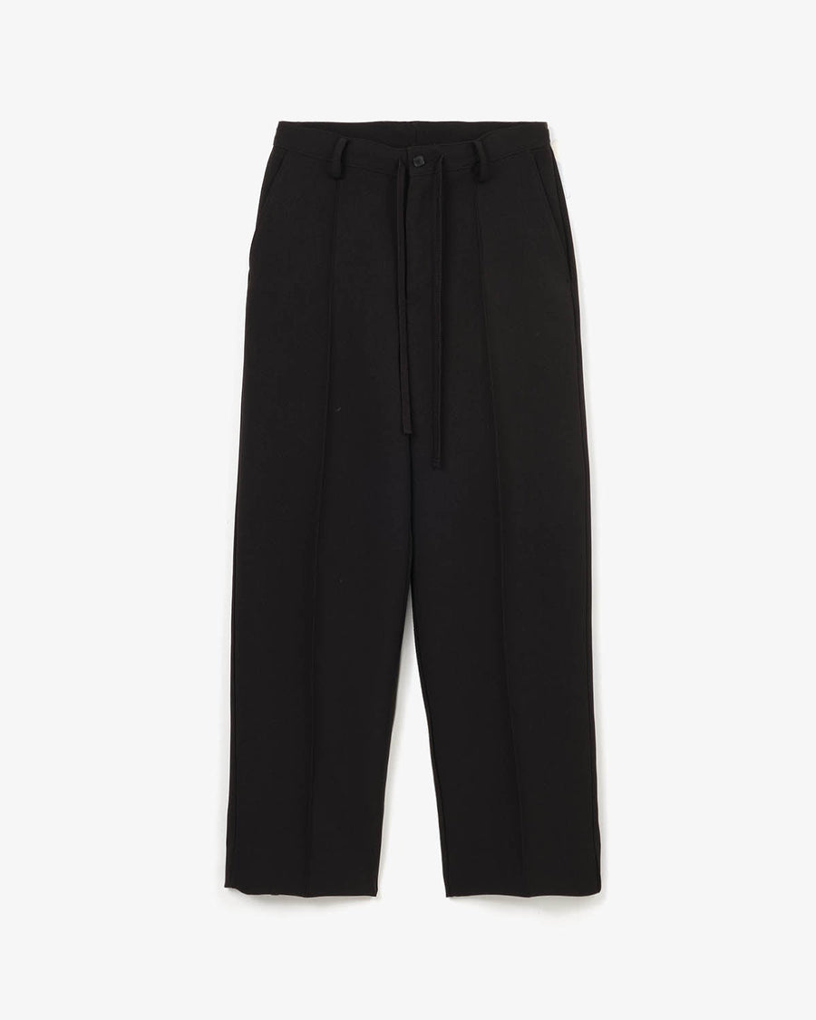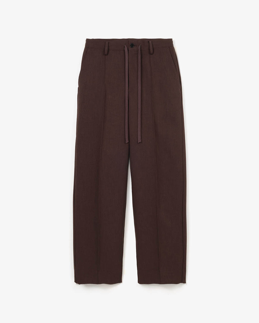 リネンライクなナチュラル感とドライな風合いを持つ、二重織ポリエステル素材を使用したスラックスです。